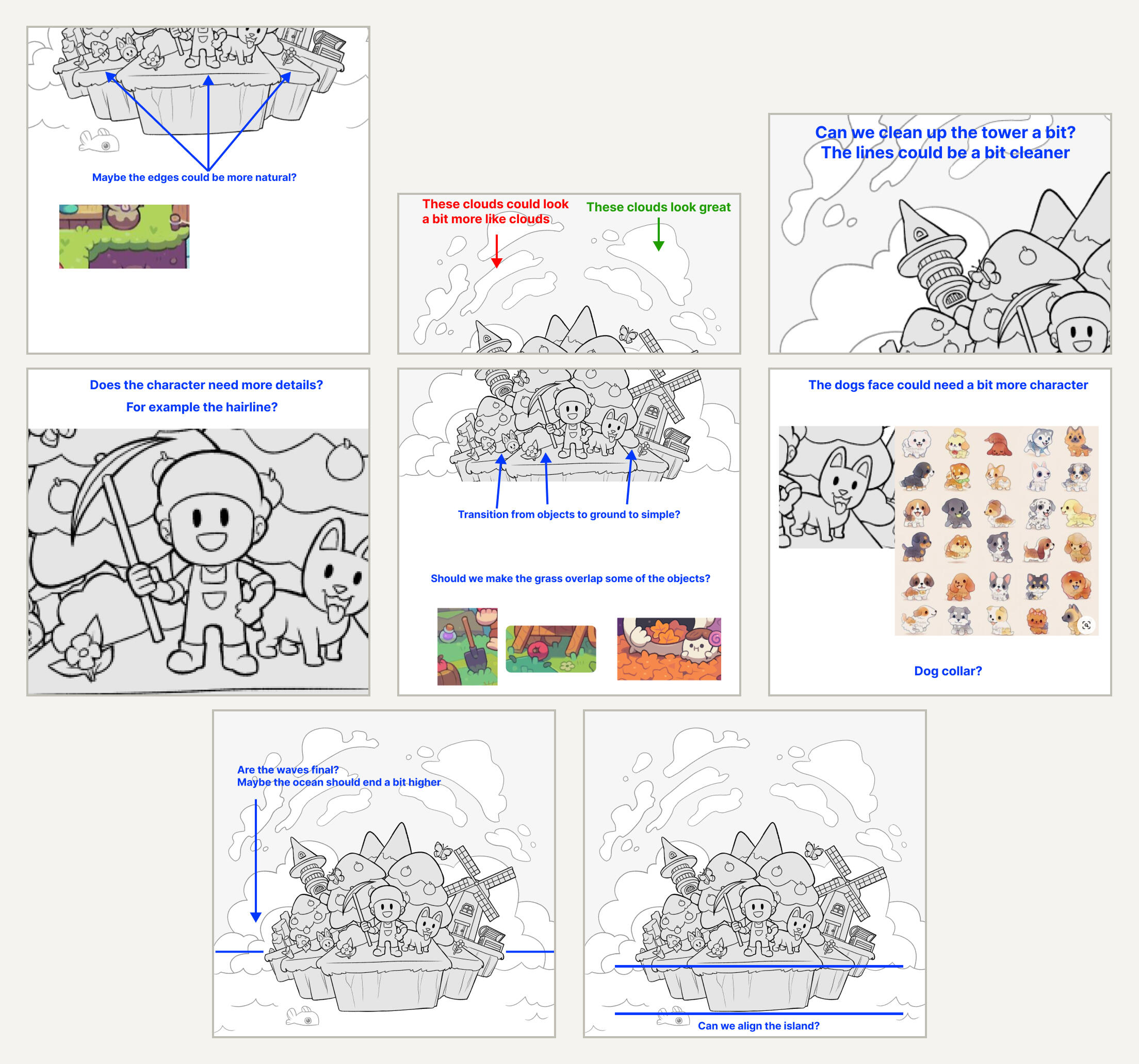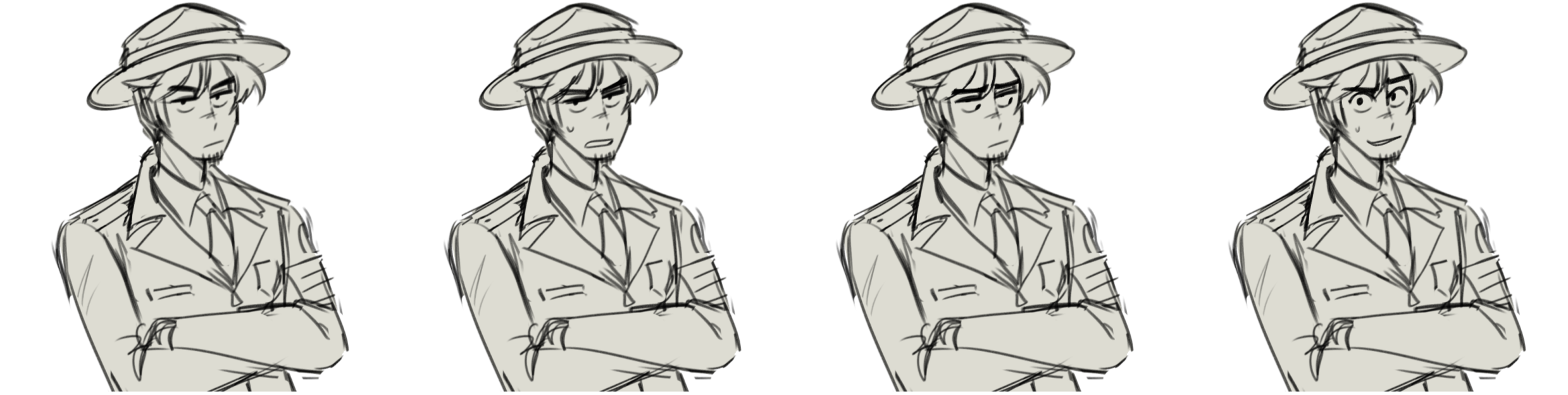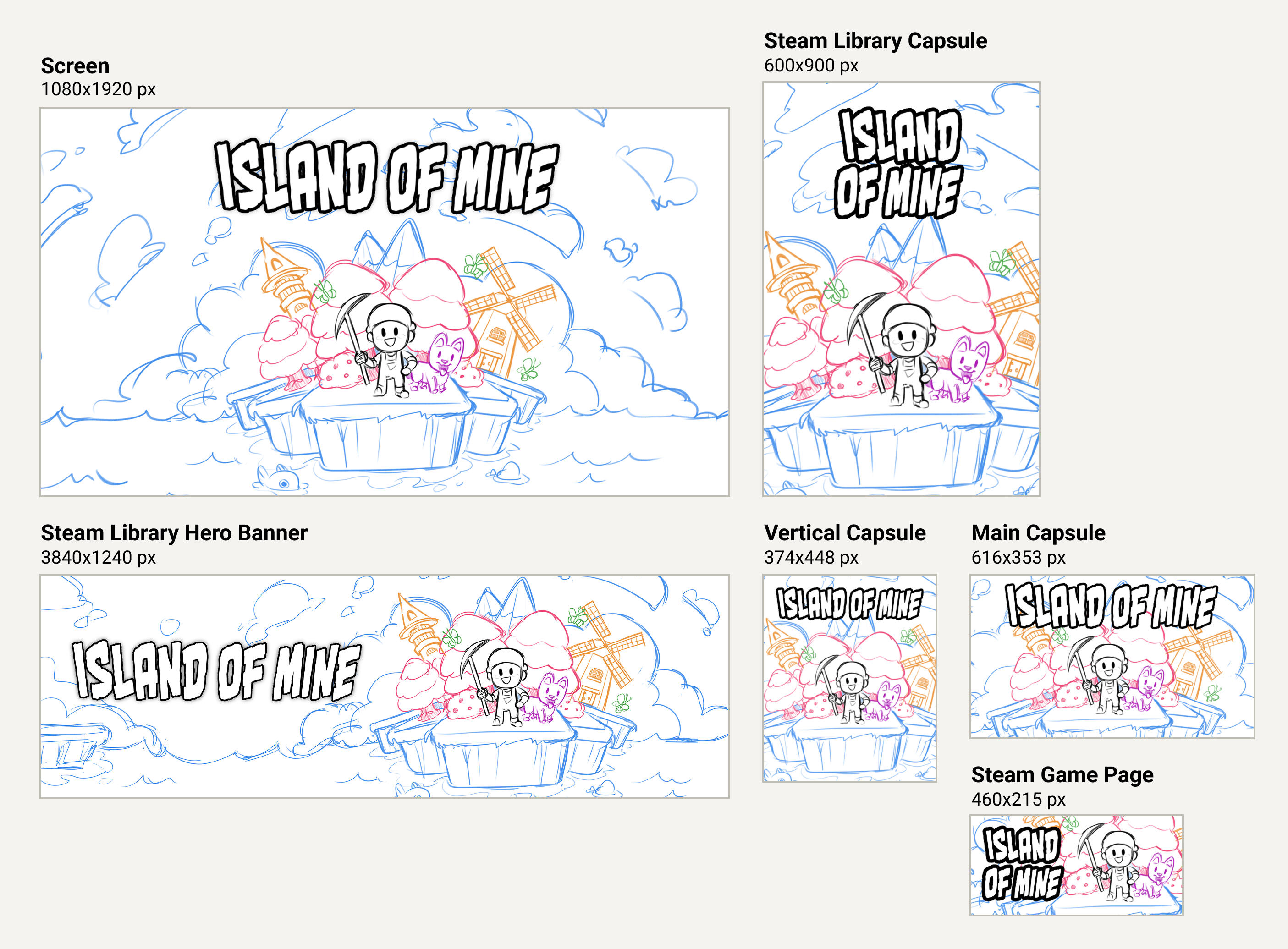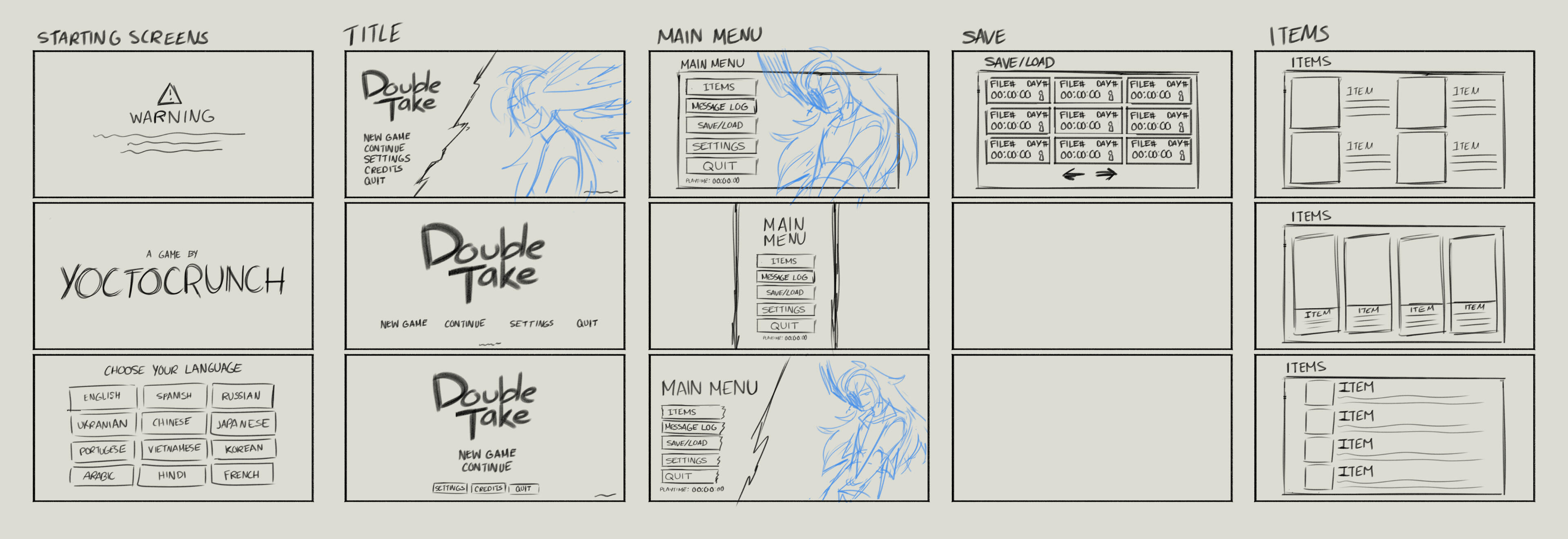 My initial wireframes created in Clip Studio Paint. The character placeholder art was illustated by me.