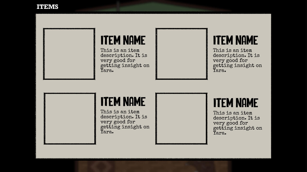 Breif details of the project. Yara's camping trip comes to a terrifying end when a supernatural doppelgänger steals her life. You play as the deceptive imposter attempting to navigate Yara’s life while concealing your true identity. An RPG in development.