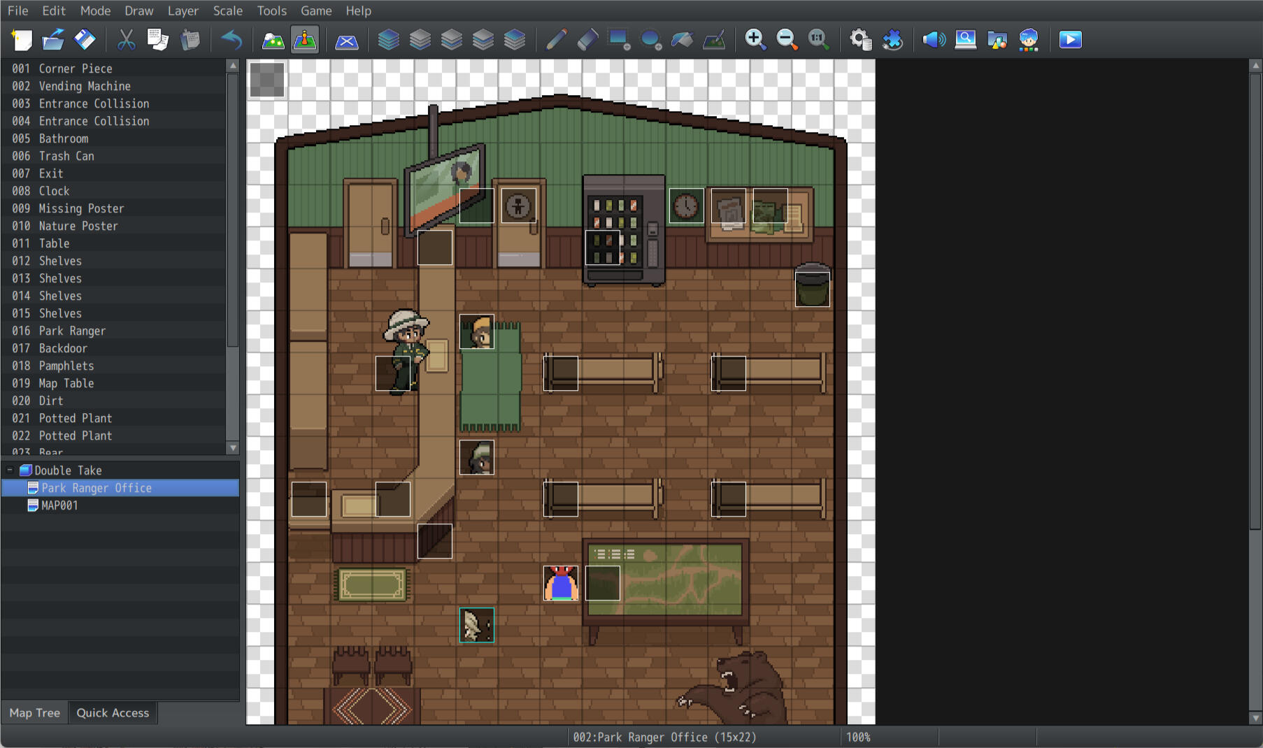 The game is being developed in RPG Maker MZ. It is a game development program that relies on scripts instead of code. While accessible to beginning game developers, it brings about a few challenges such as: