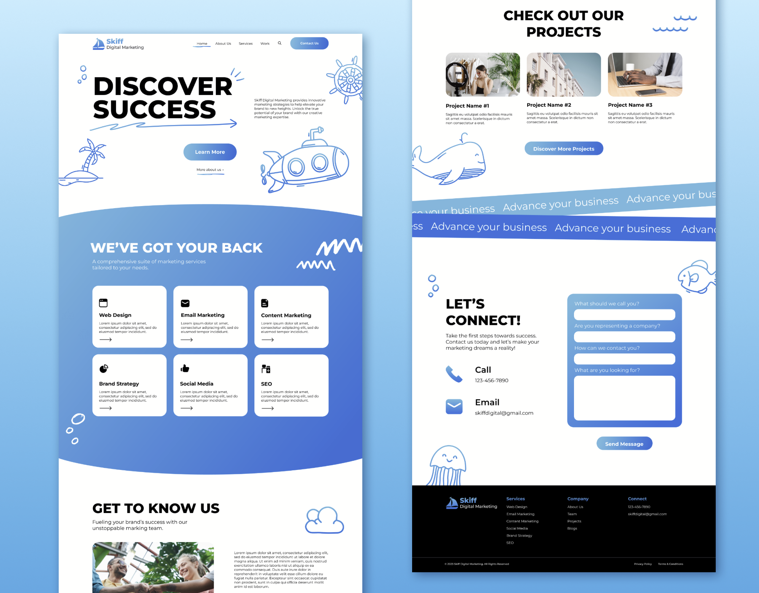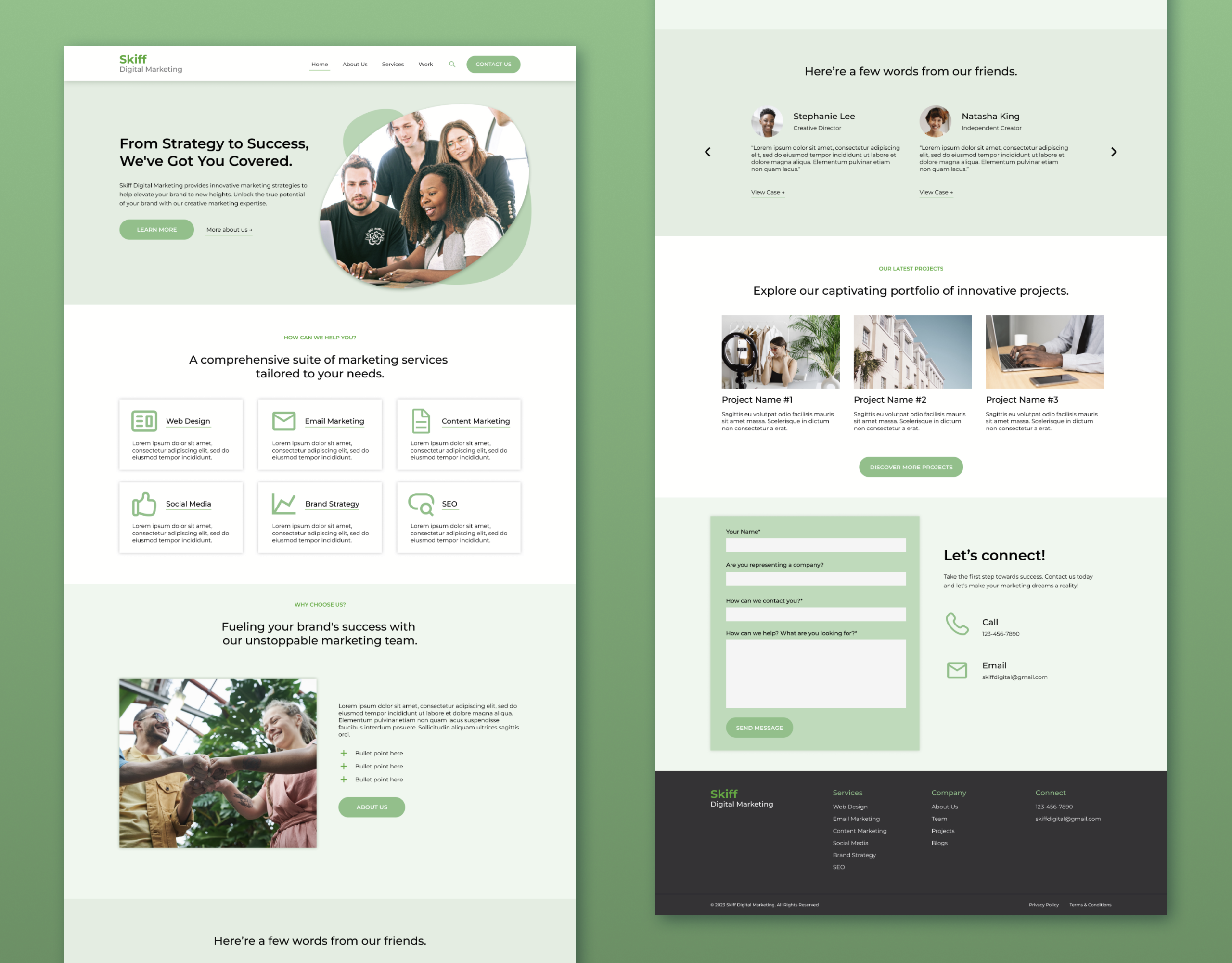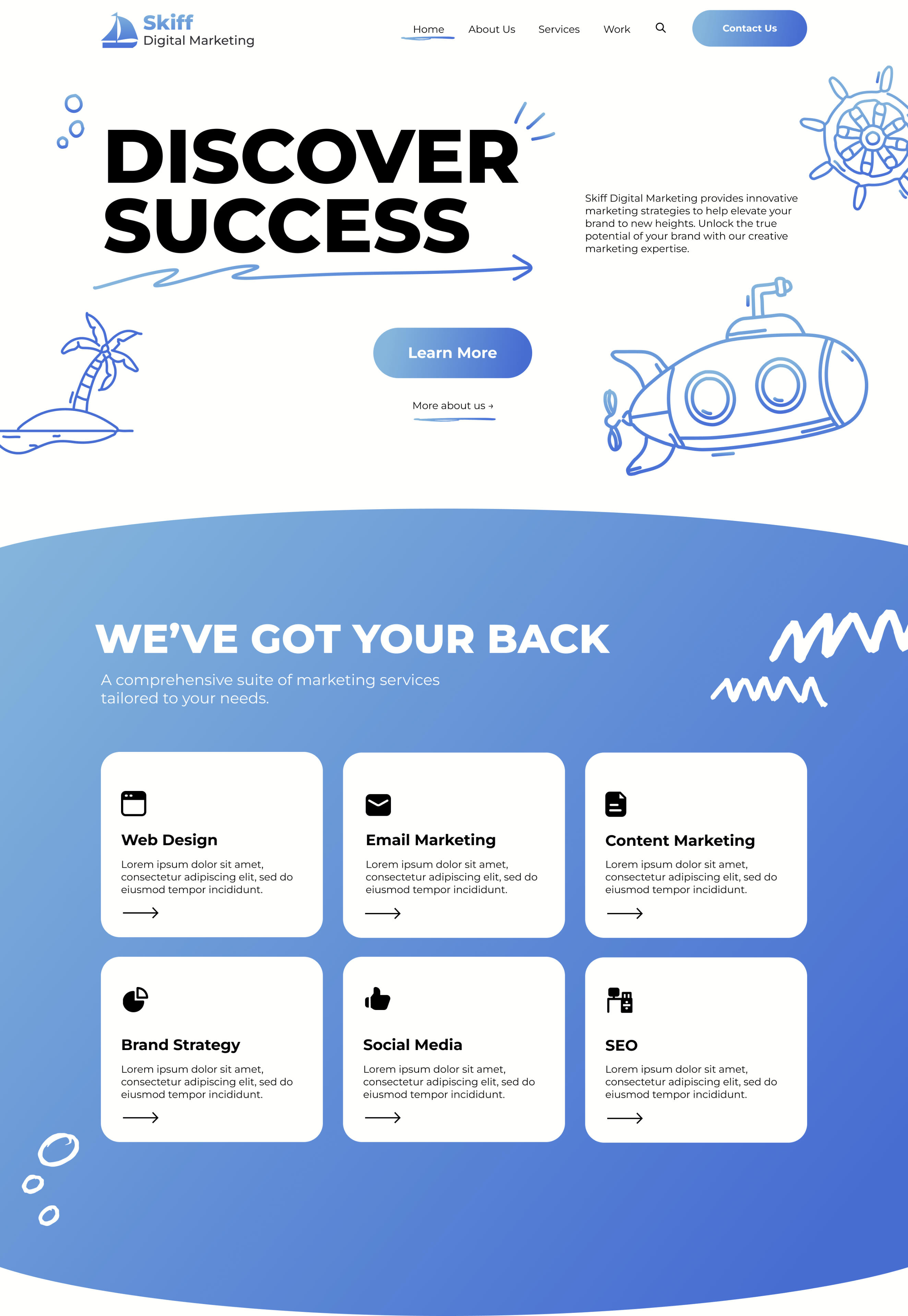 A landing page I designed for the marketing company, Skiff Digital Marketing, in July 2023 using Figma. It was one of the first web designs I made for someone else and it contributed immensely to my growth as a designer.