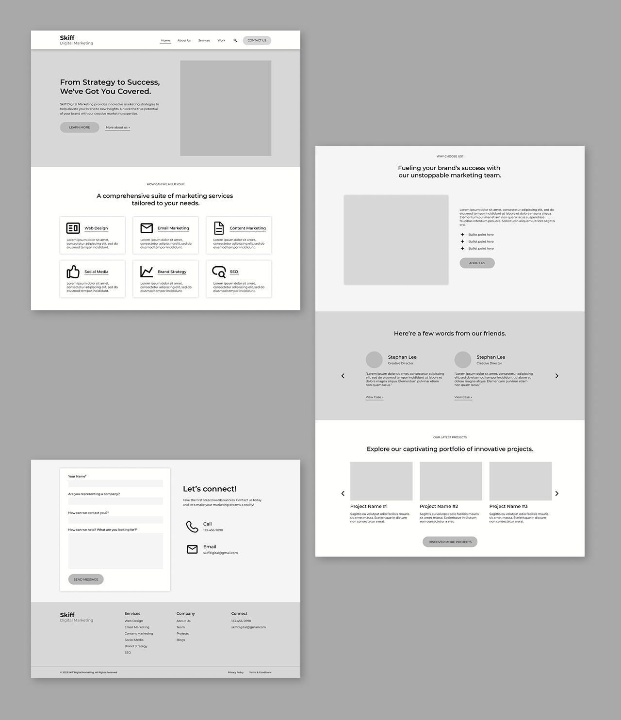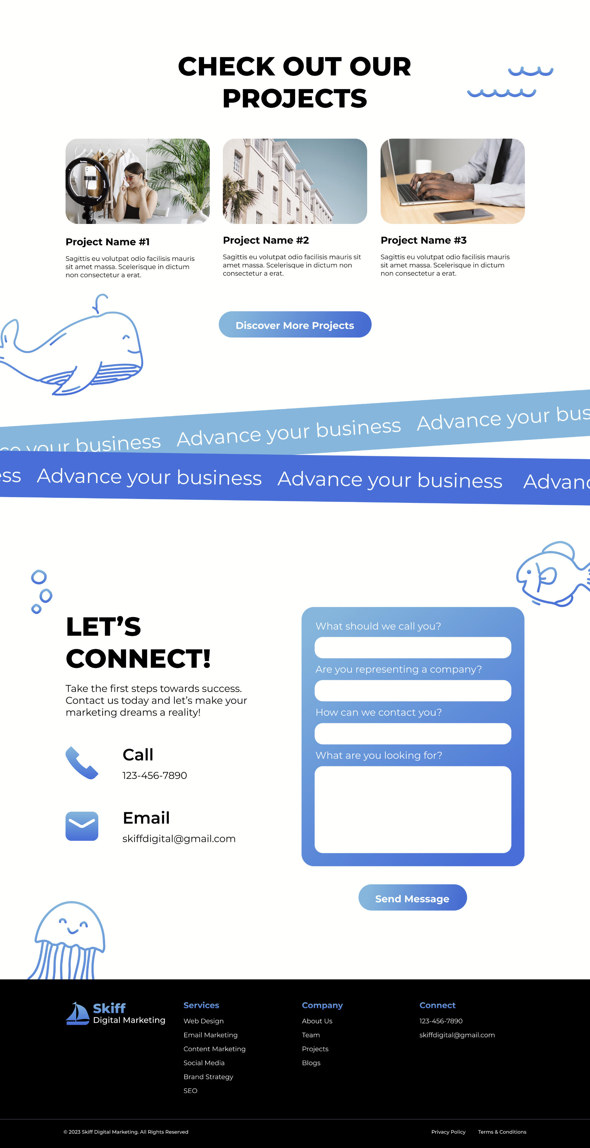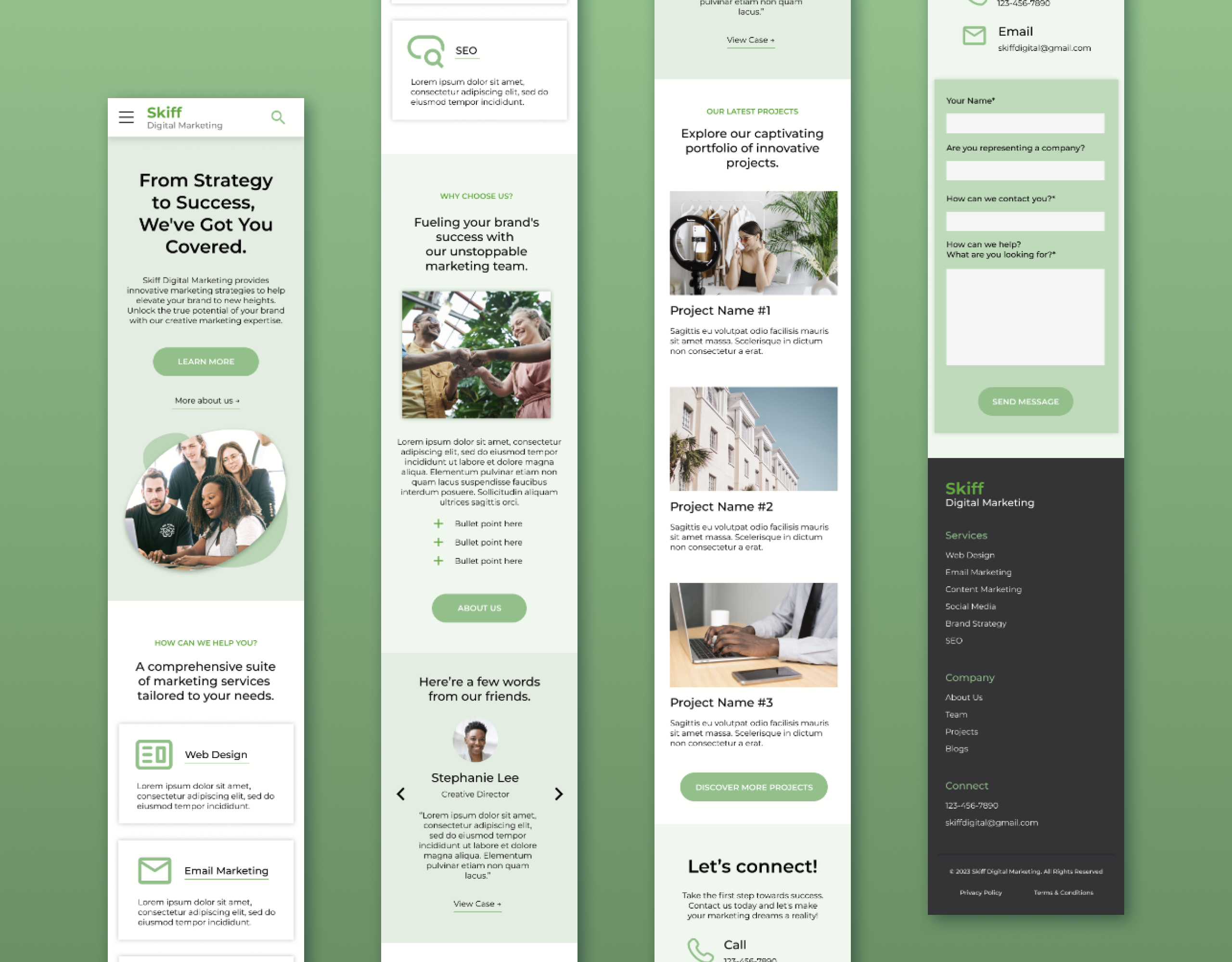 A landing page I designed for the marketing company, Skiff Digital Marketing, in July 2023 using Figma. It was one of the first web designs I made for someone else and it contributed immensely to my growth as a designer.