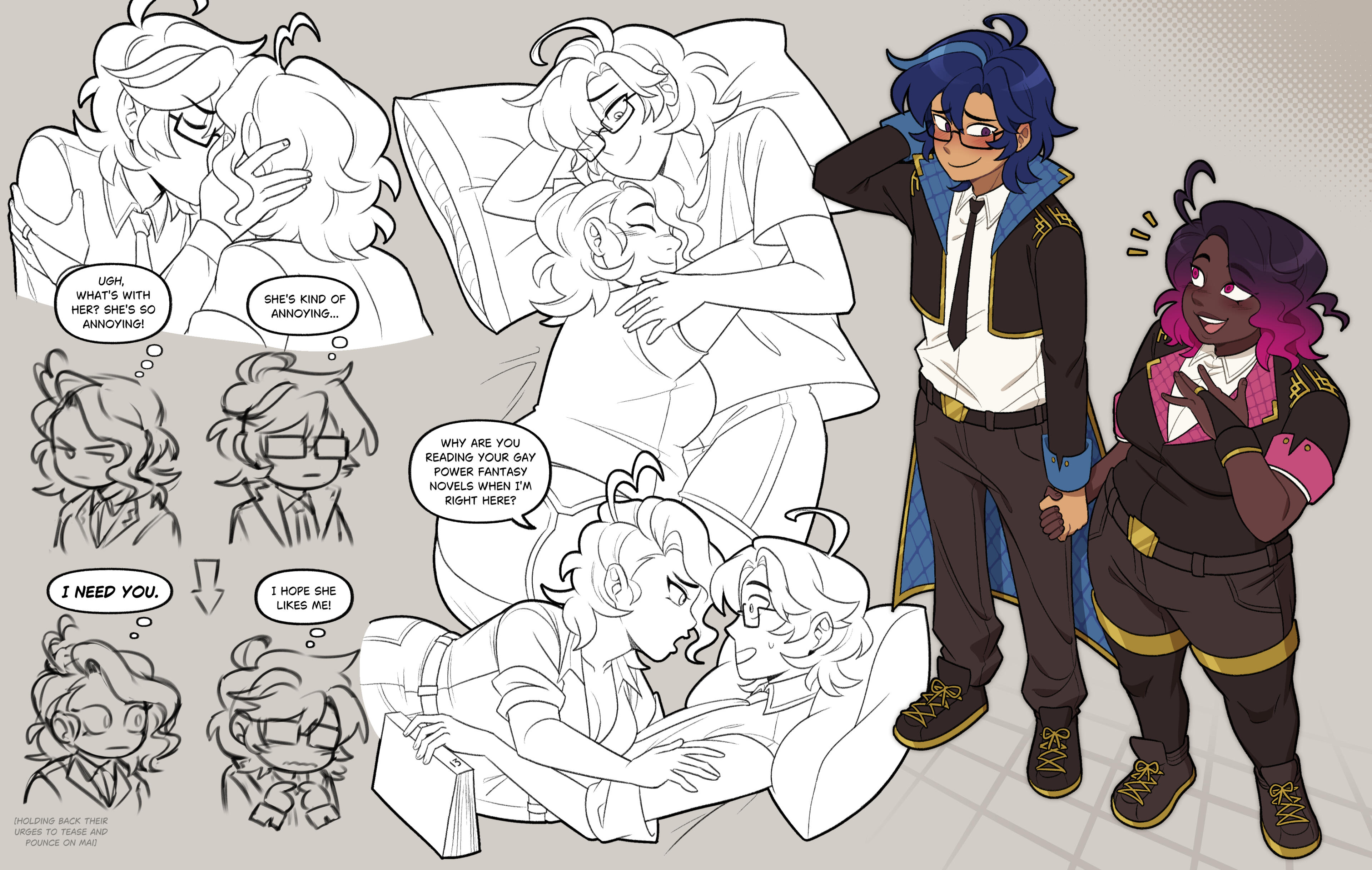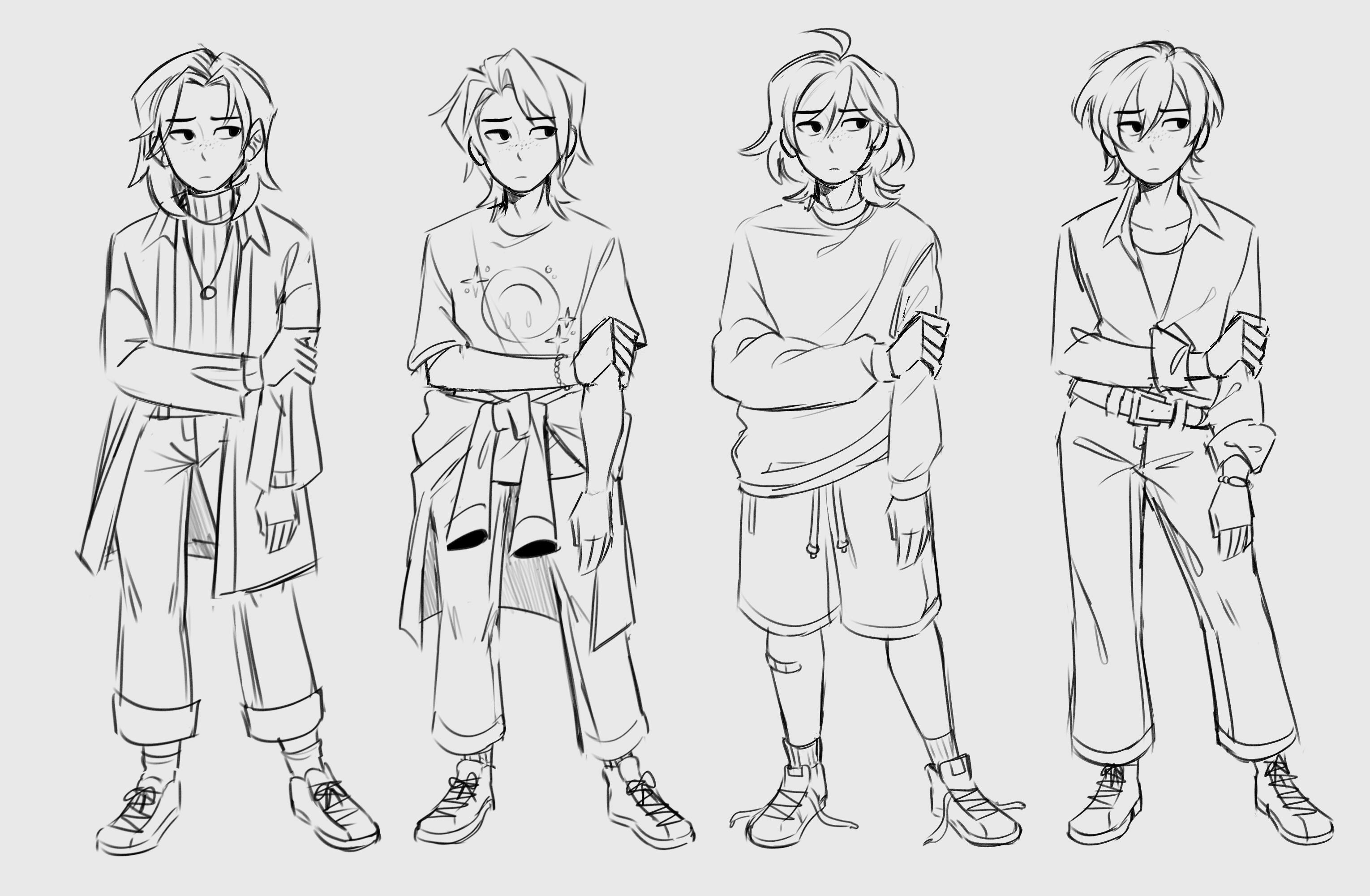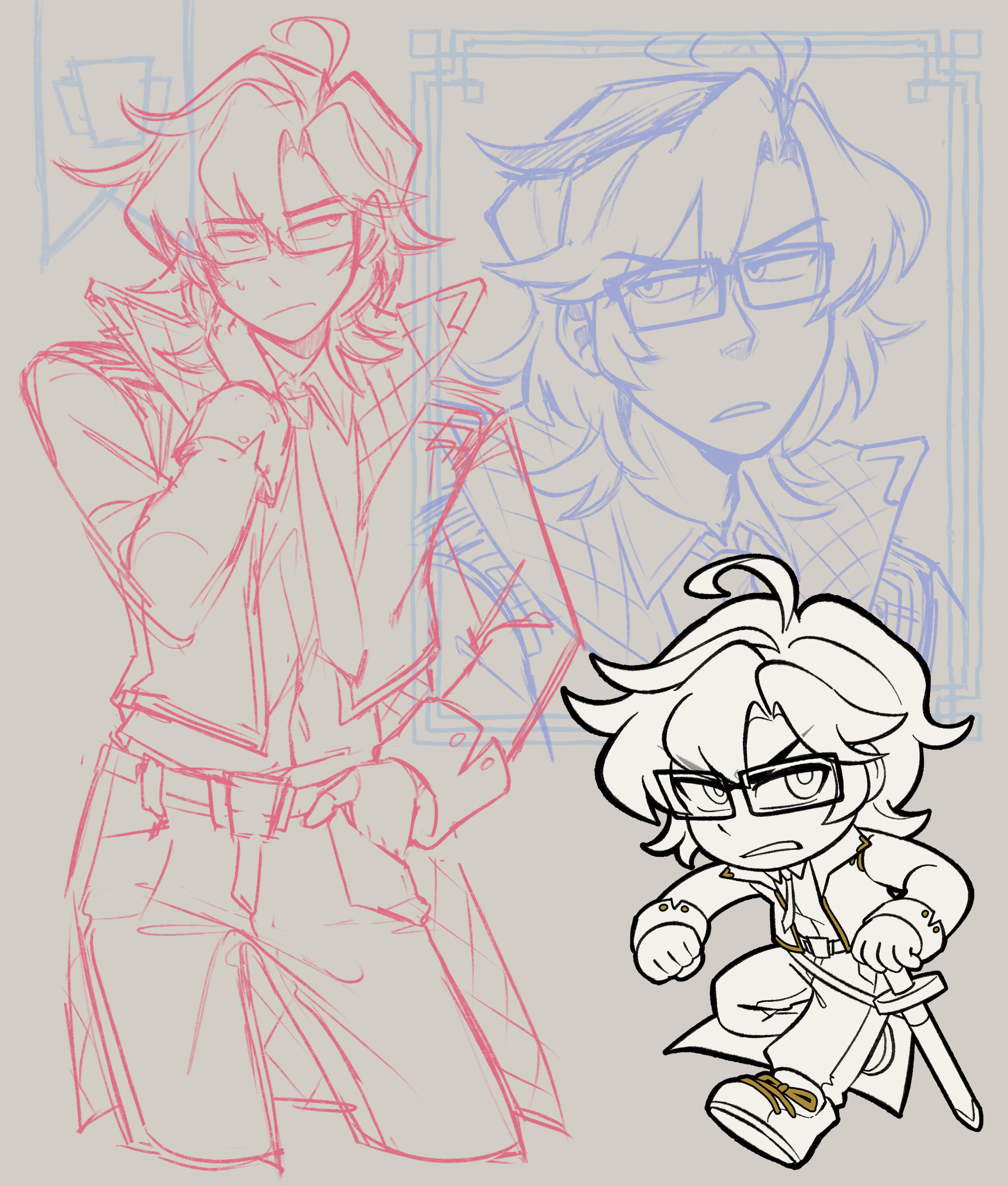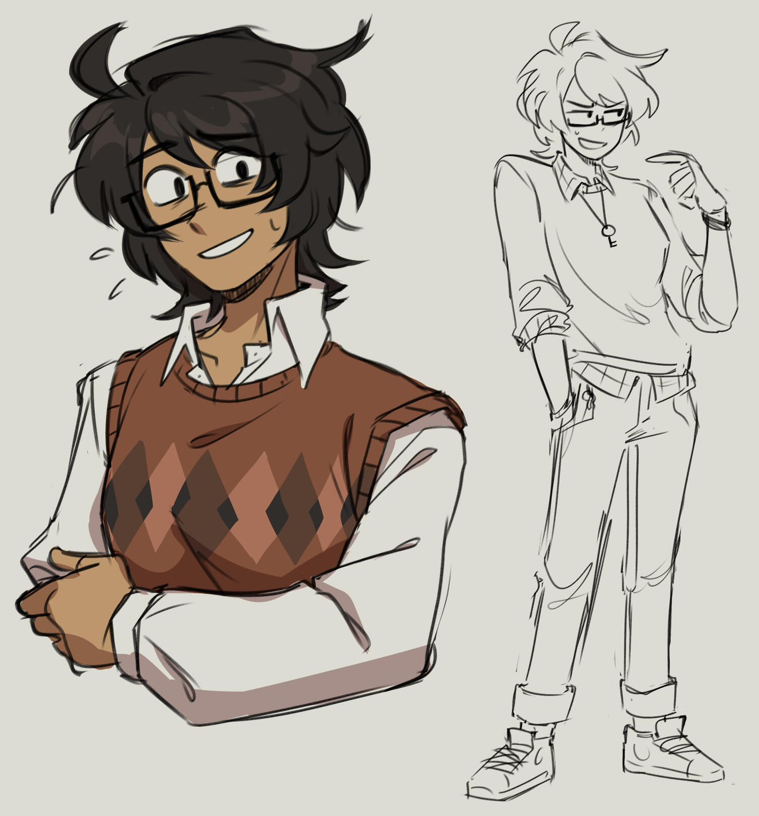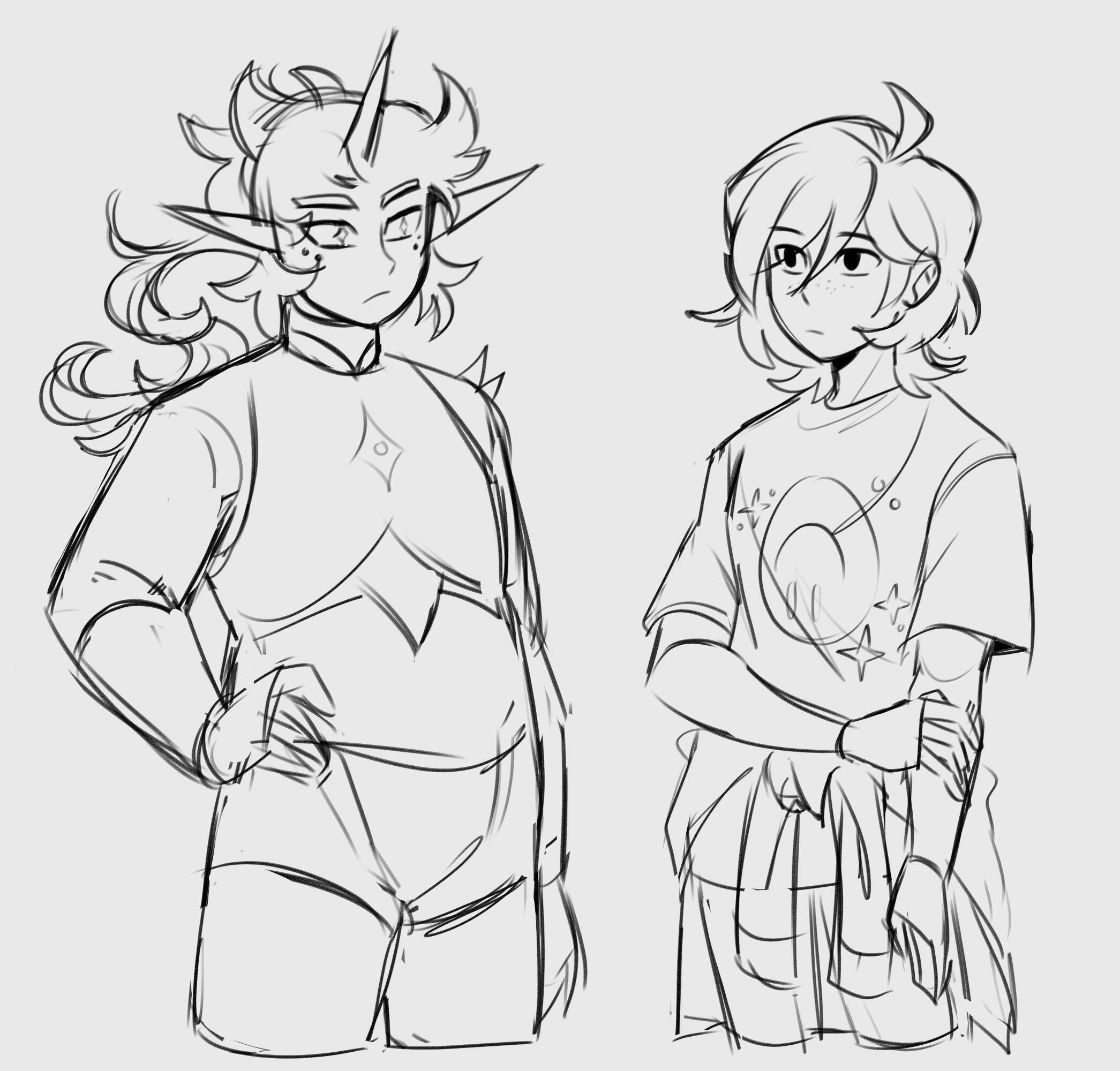 Sketches of the main two characters. Pyxis was designed by Circlejourney.