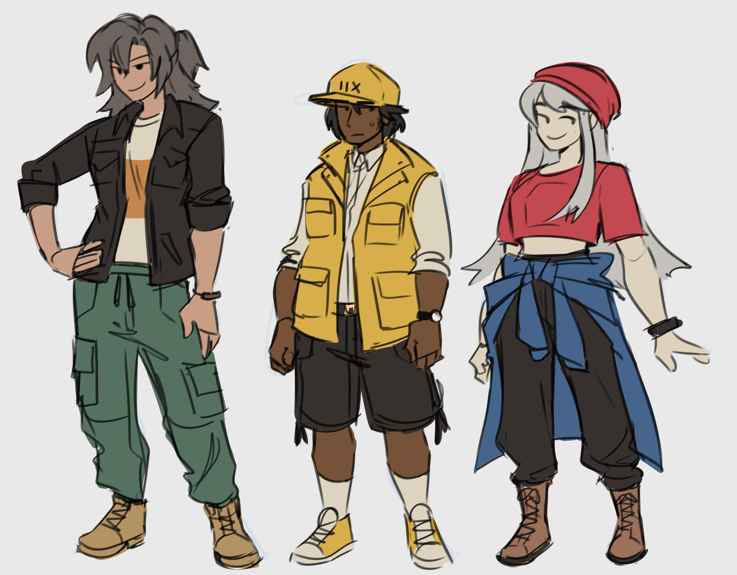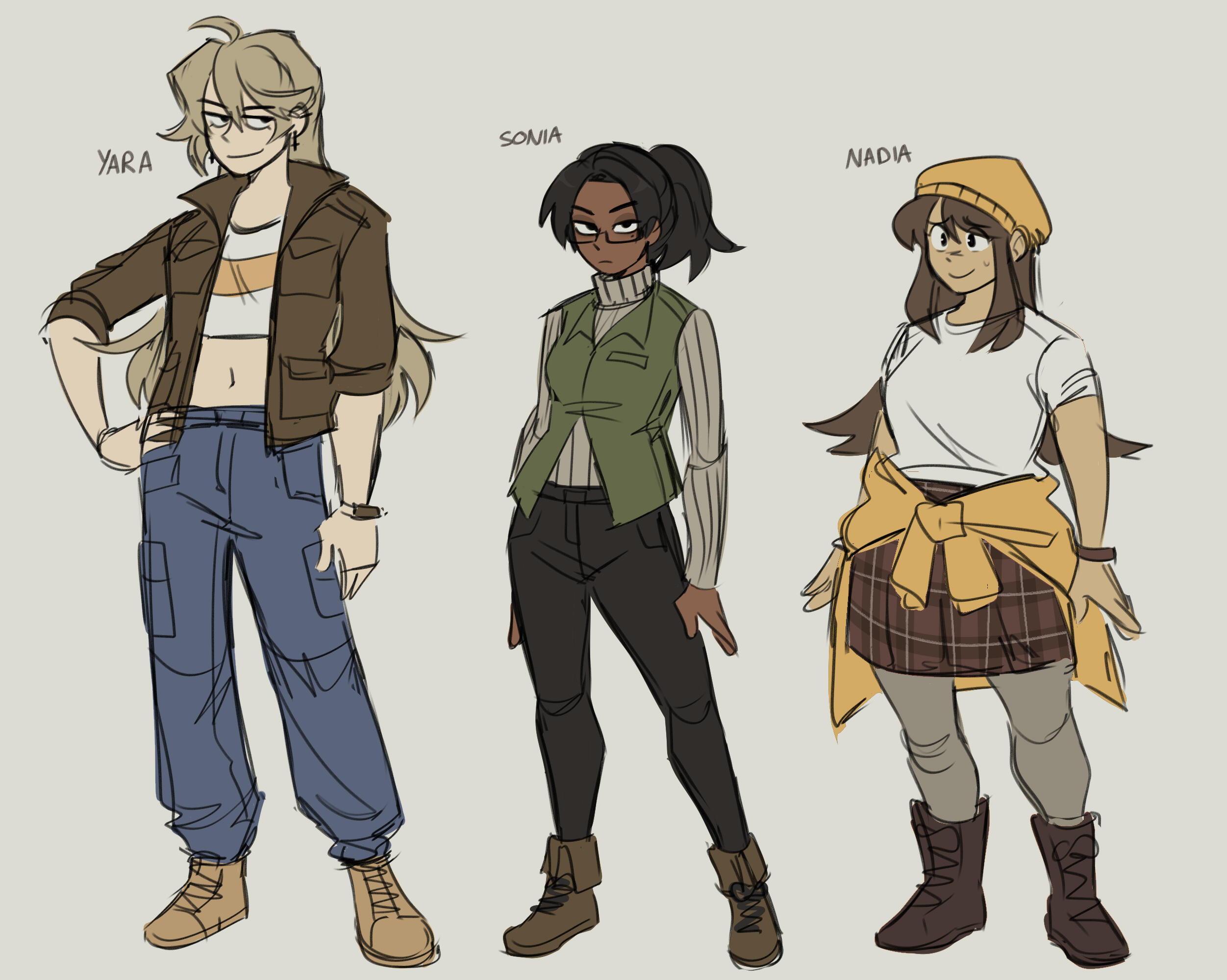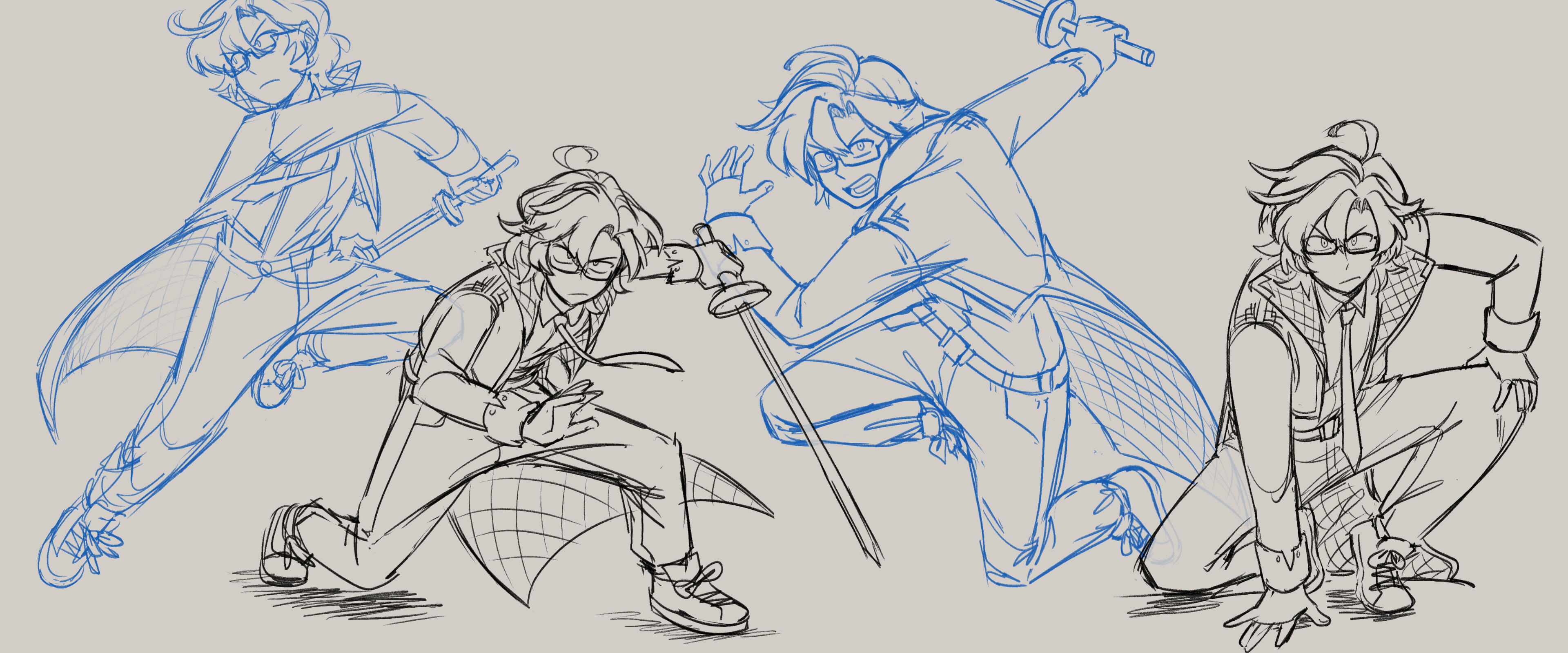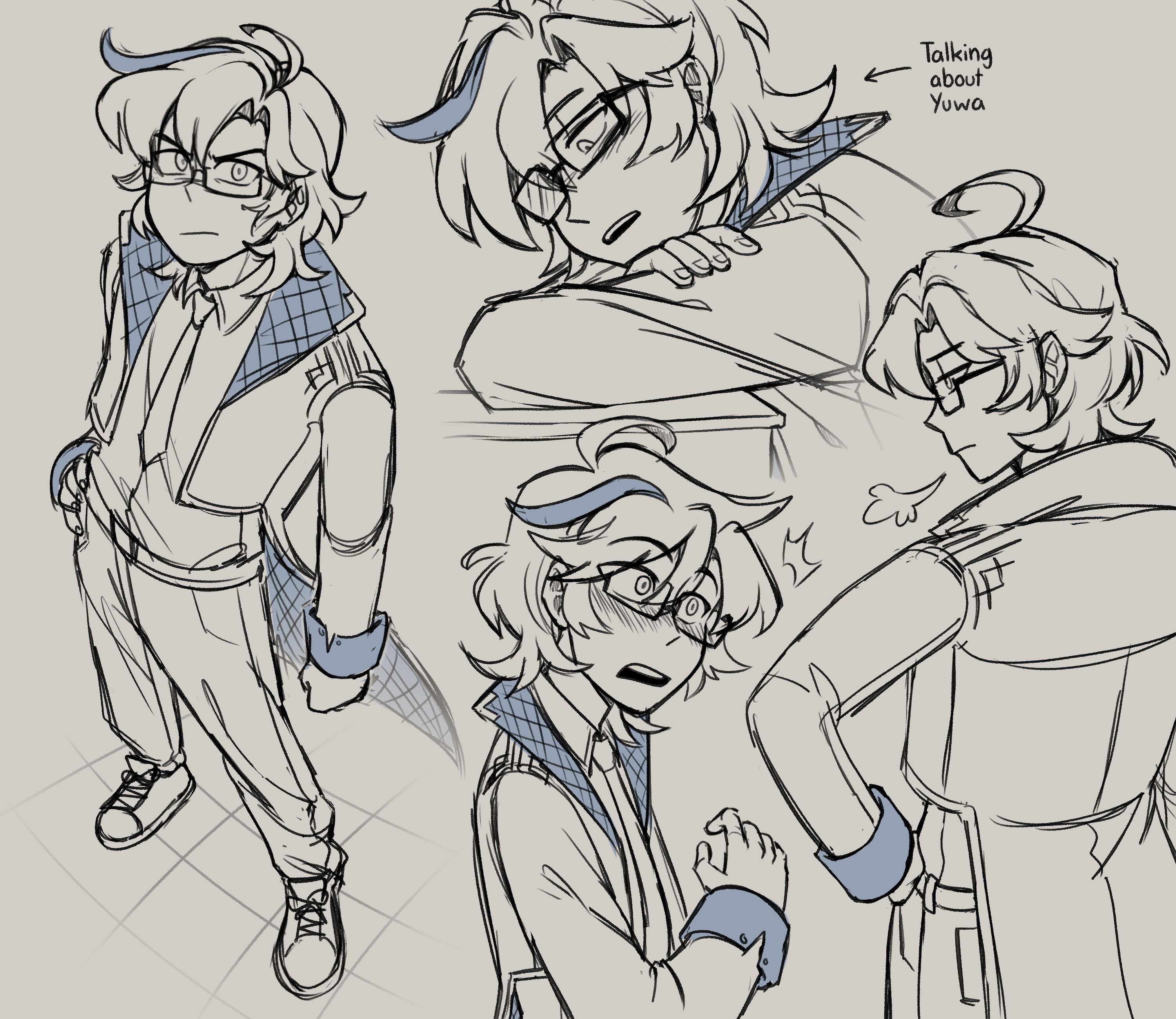 Sketches of the main two characters. Pyxis was designed by Circlejourney.