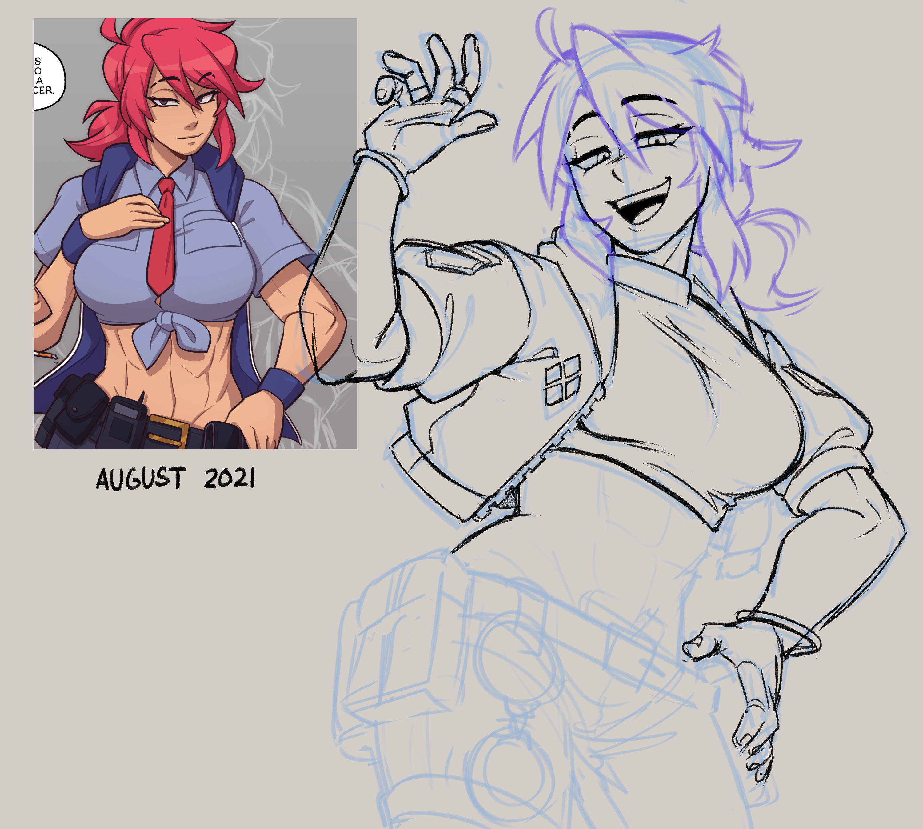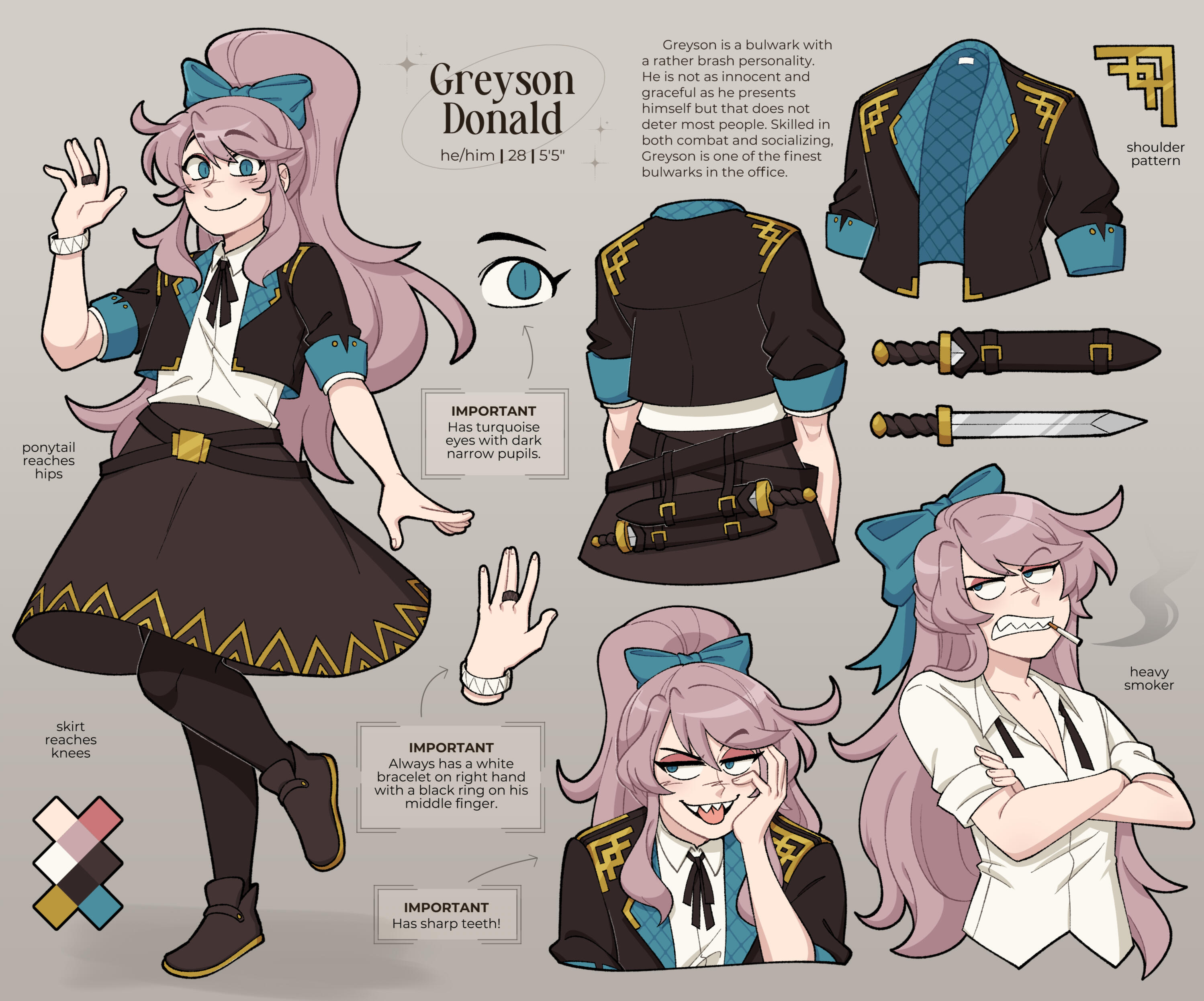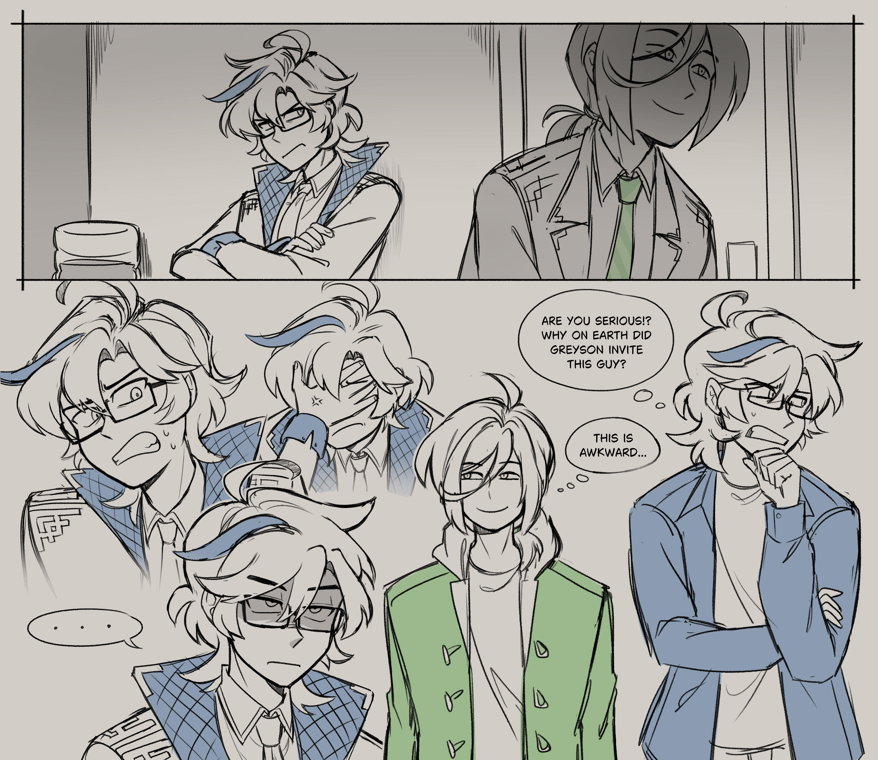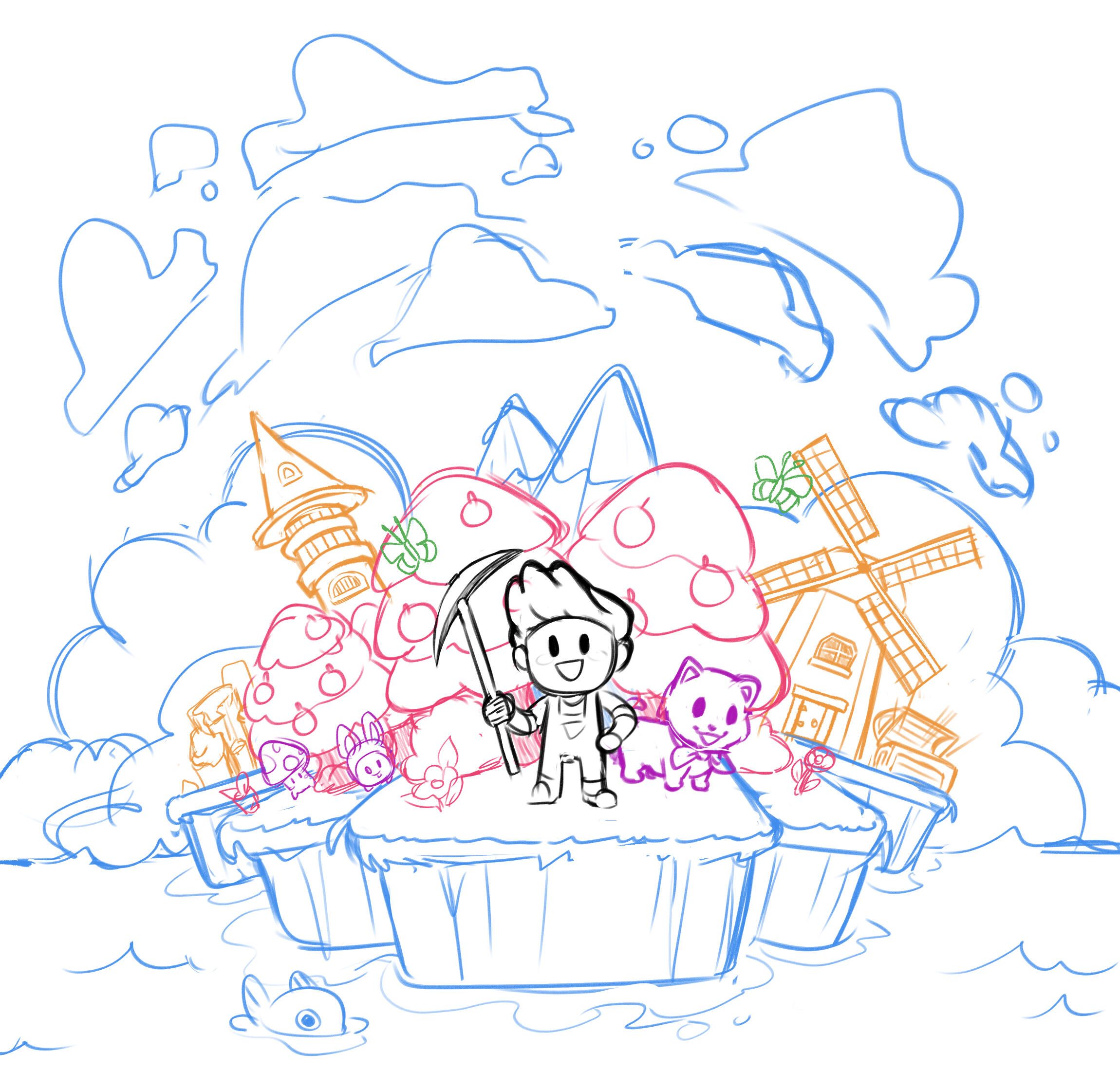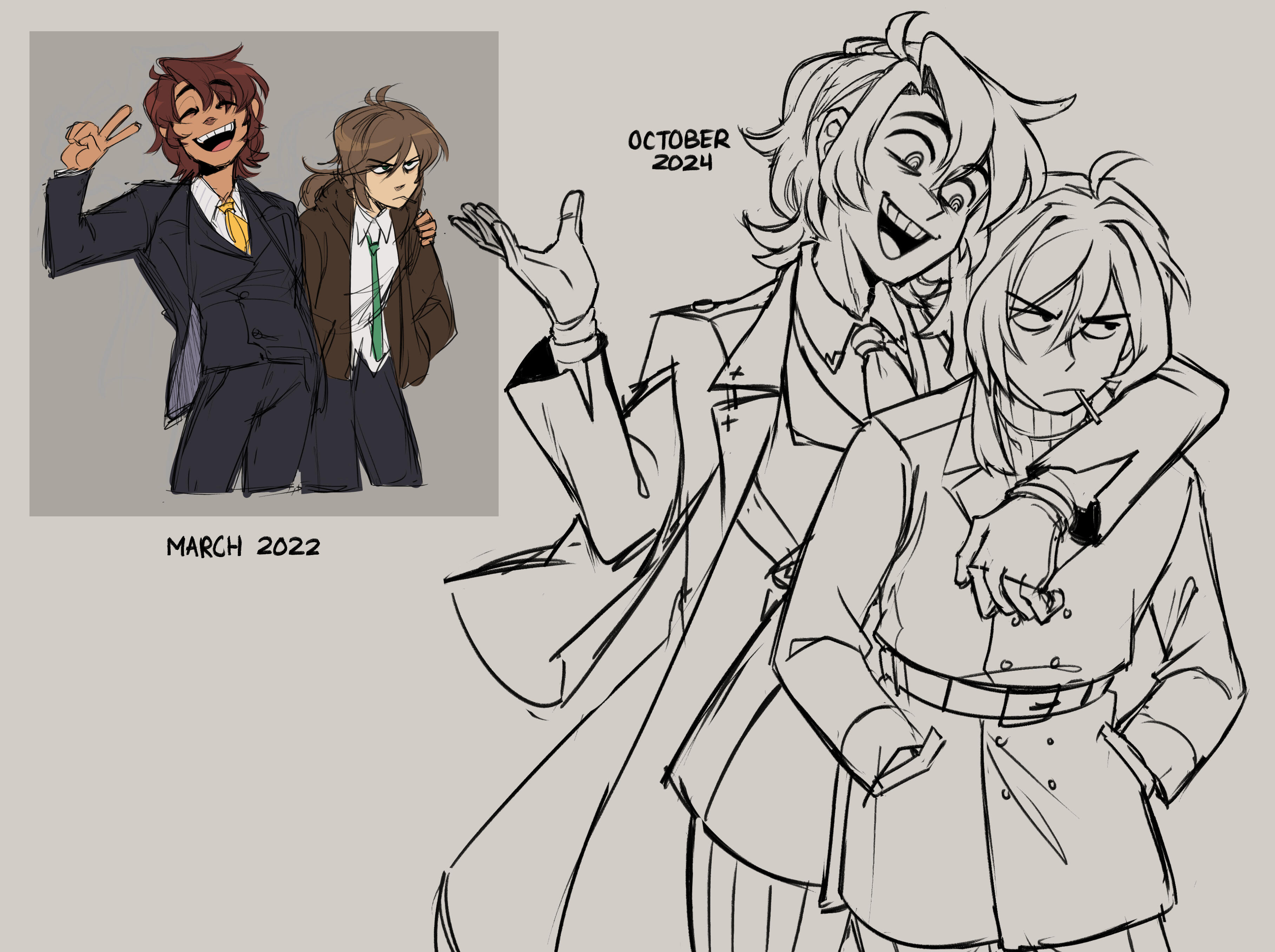 Sketches of the main two characters. Pyxis was designed by Circlejourney.