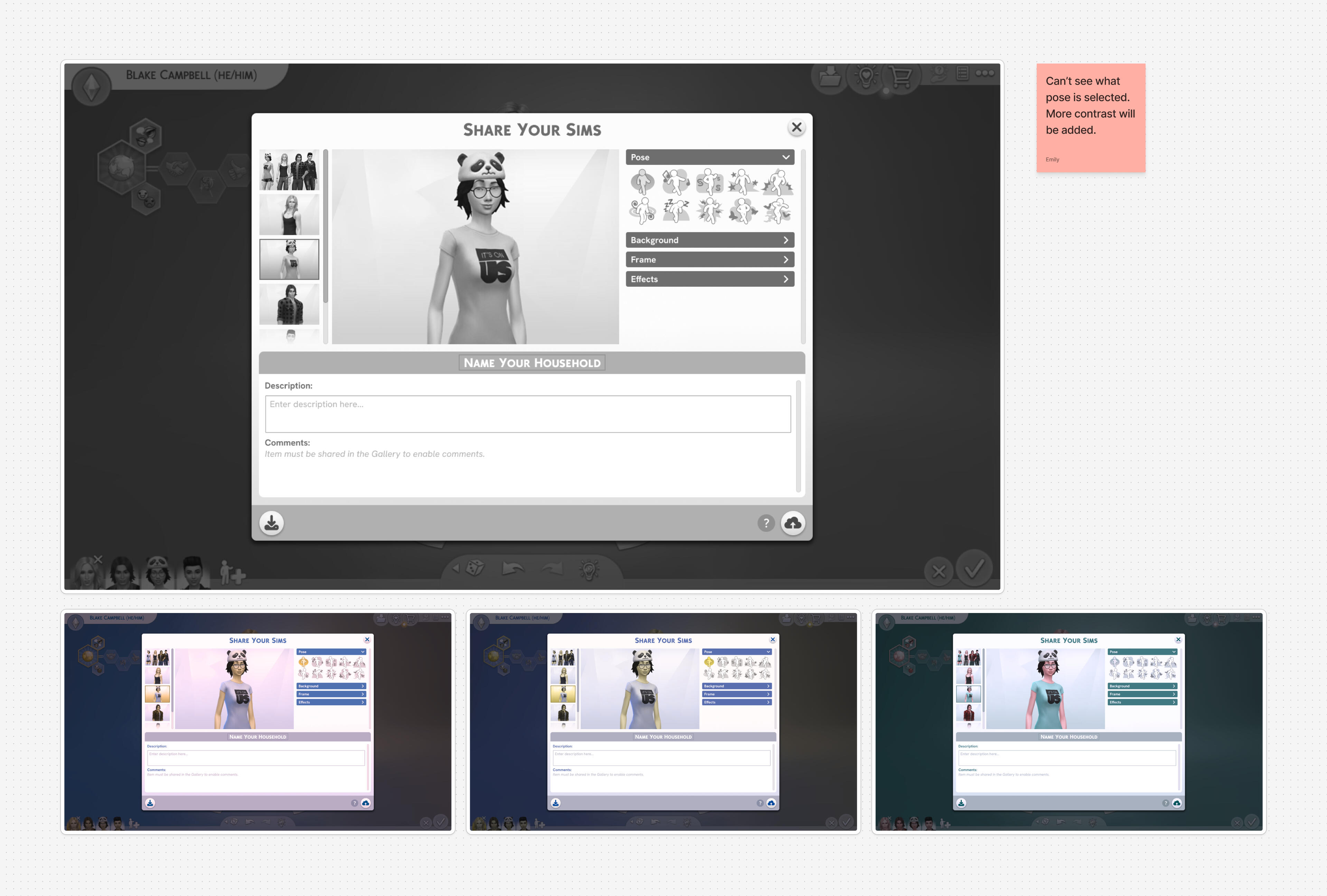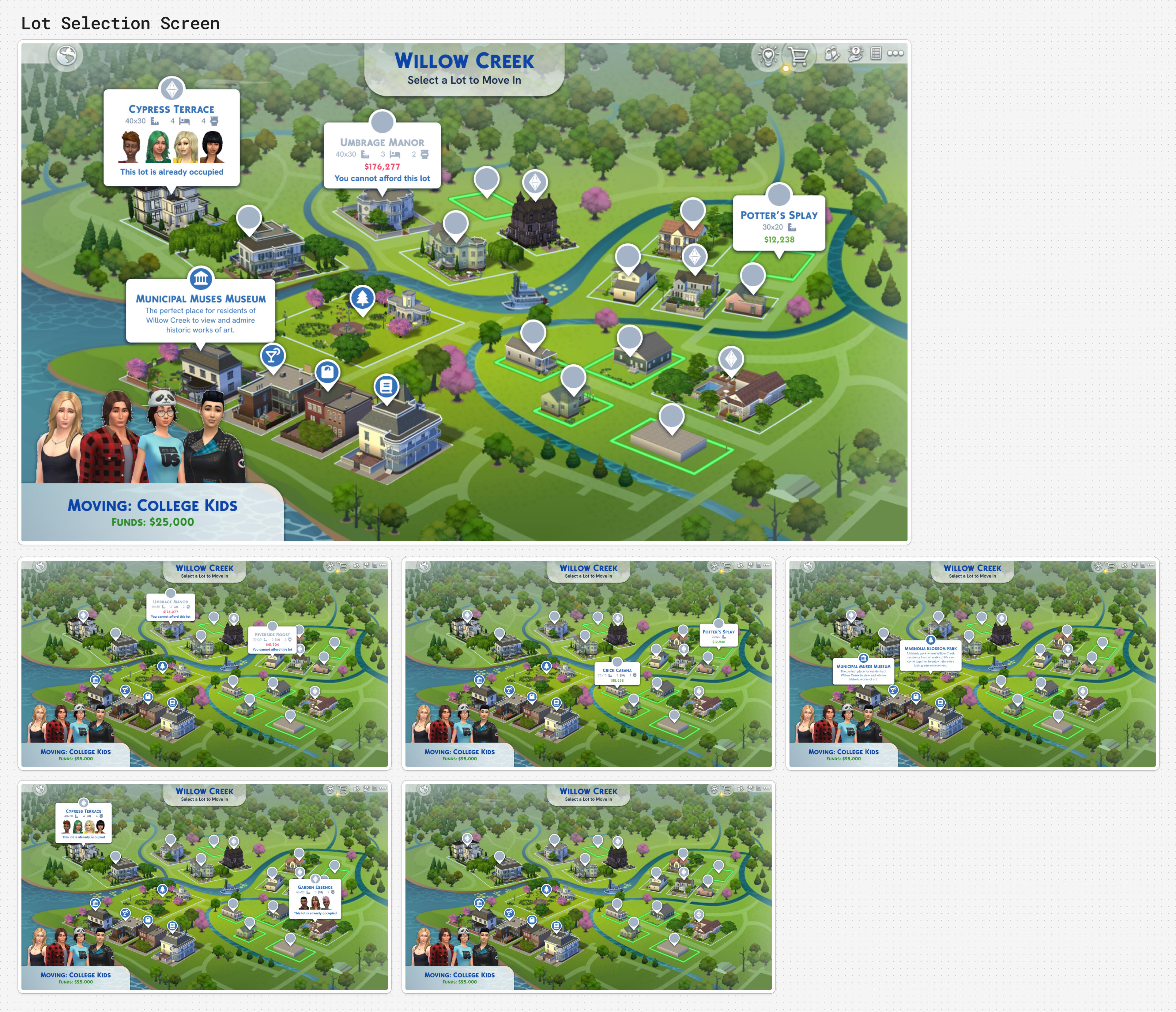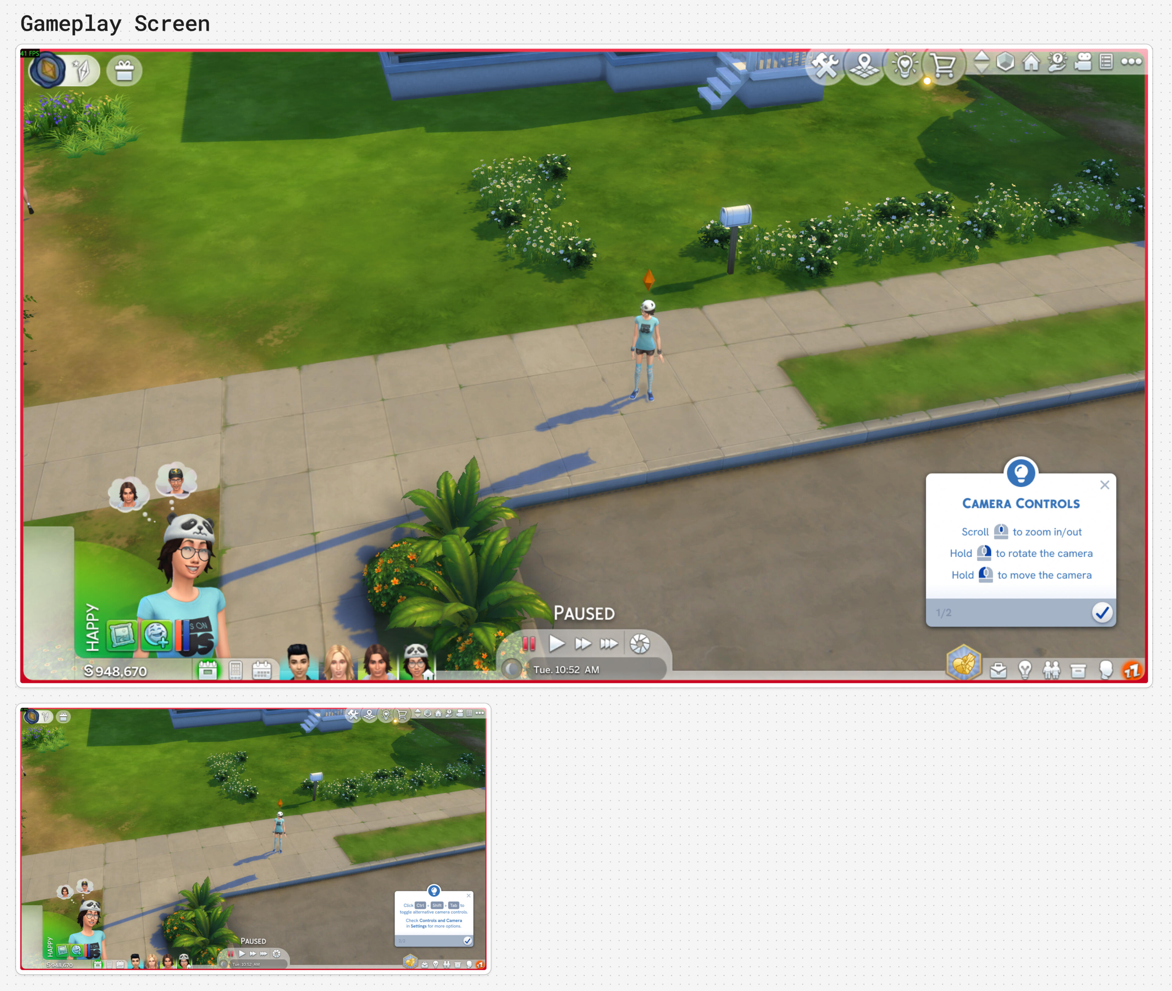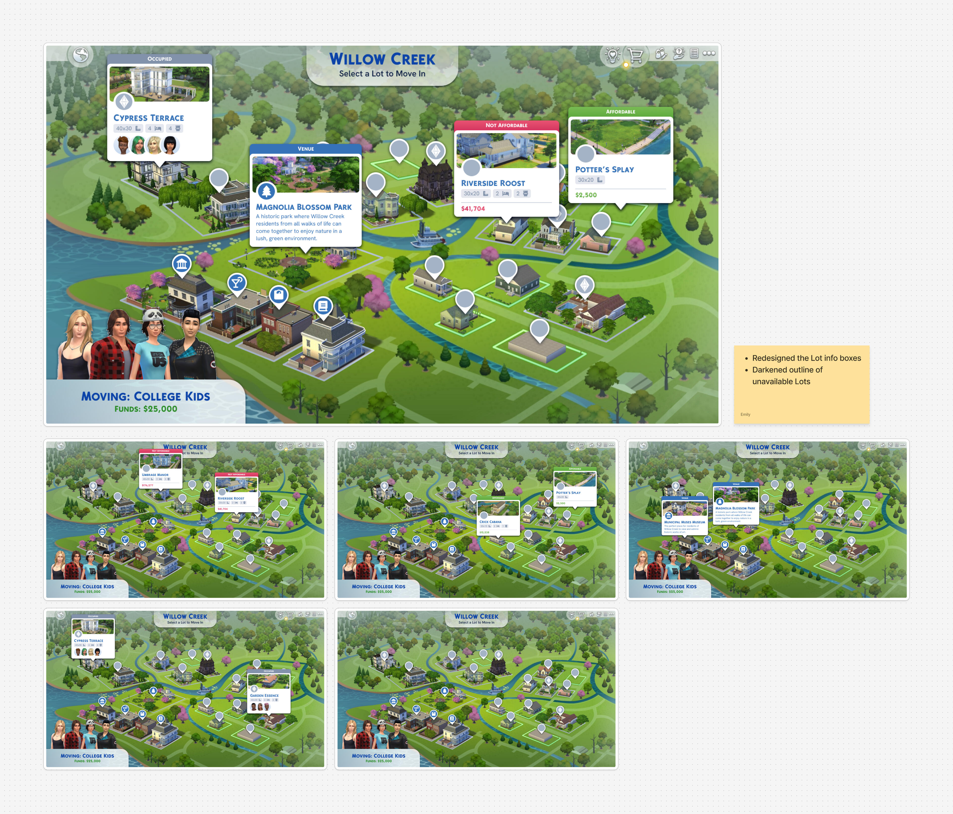 While collecting screenshots, I discovered I analyzed an old version of The Sims 4. Many of the issues I aimed to fix were already fixed in the latest version of the game. I made the difficult decision to deviate from my wireframes to match the latest version of the game. This was a time-consuming setback but a necessary one.