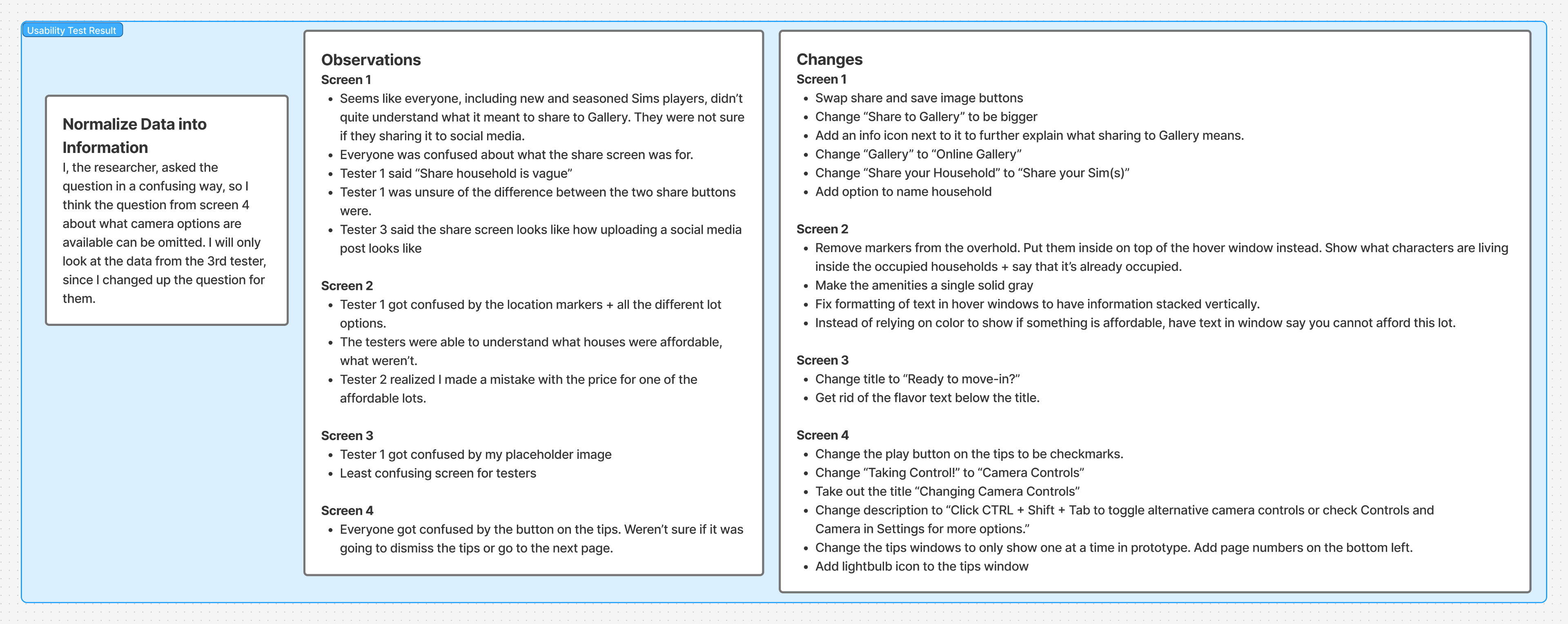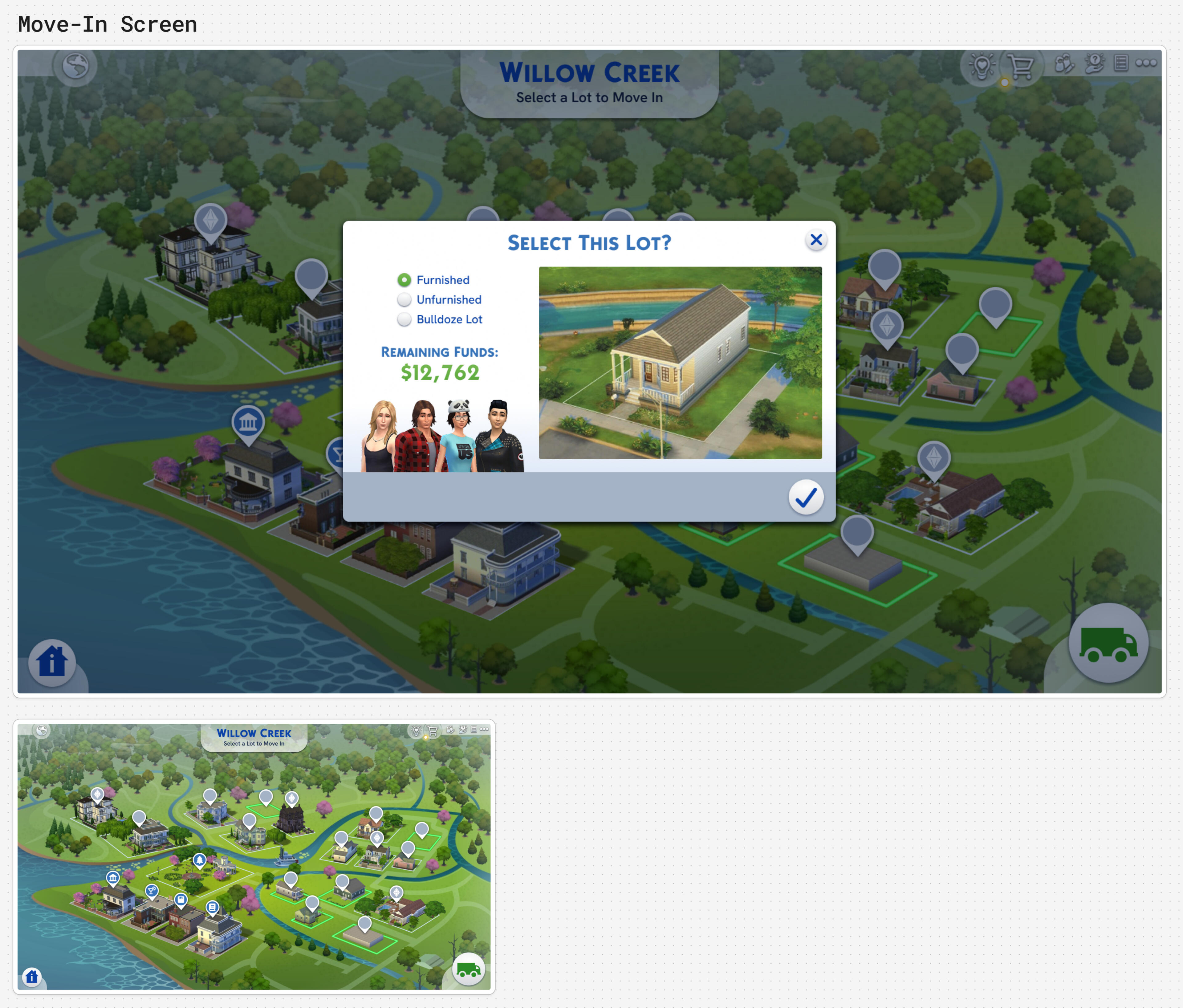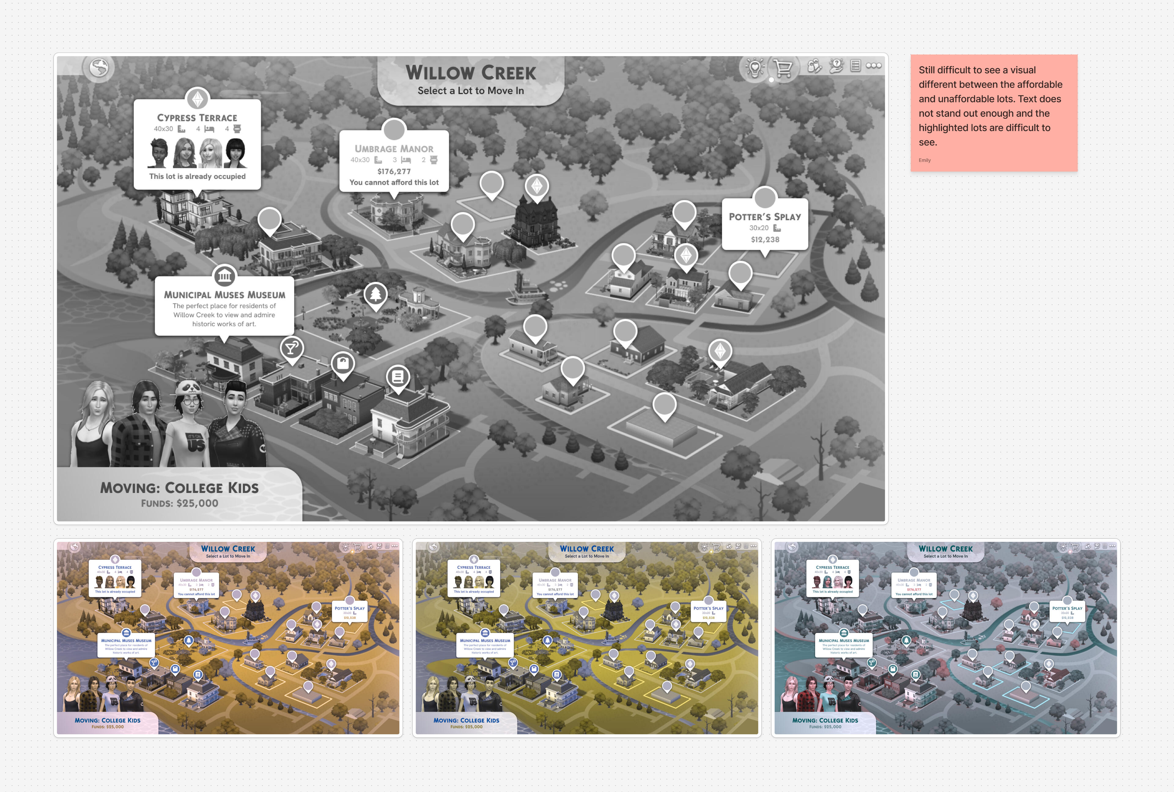 While collecting screenshots, I discovered I analyzed an old version of The Sims 4. Many of the issues I aimed to fix were already fixed in the latest version of the game. I made the difficult decision to deviate from my wireframes to match the latest version of the game. This was a time-consuming setback but a necessary one.