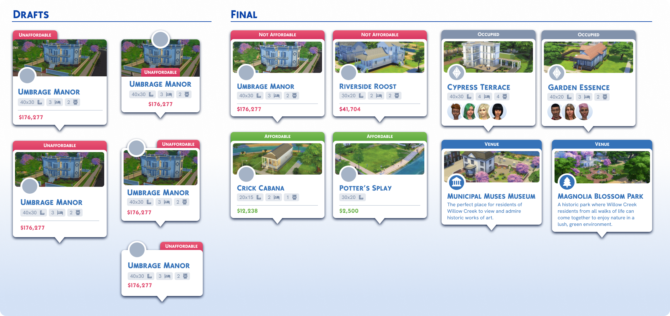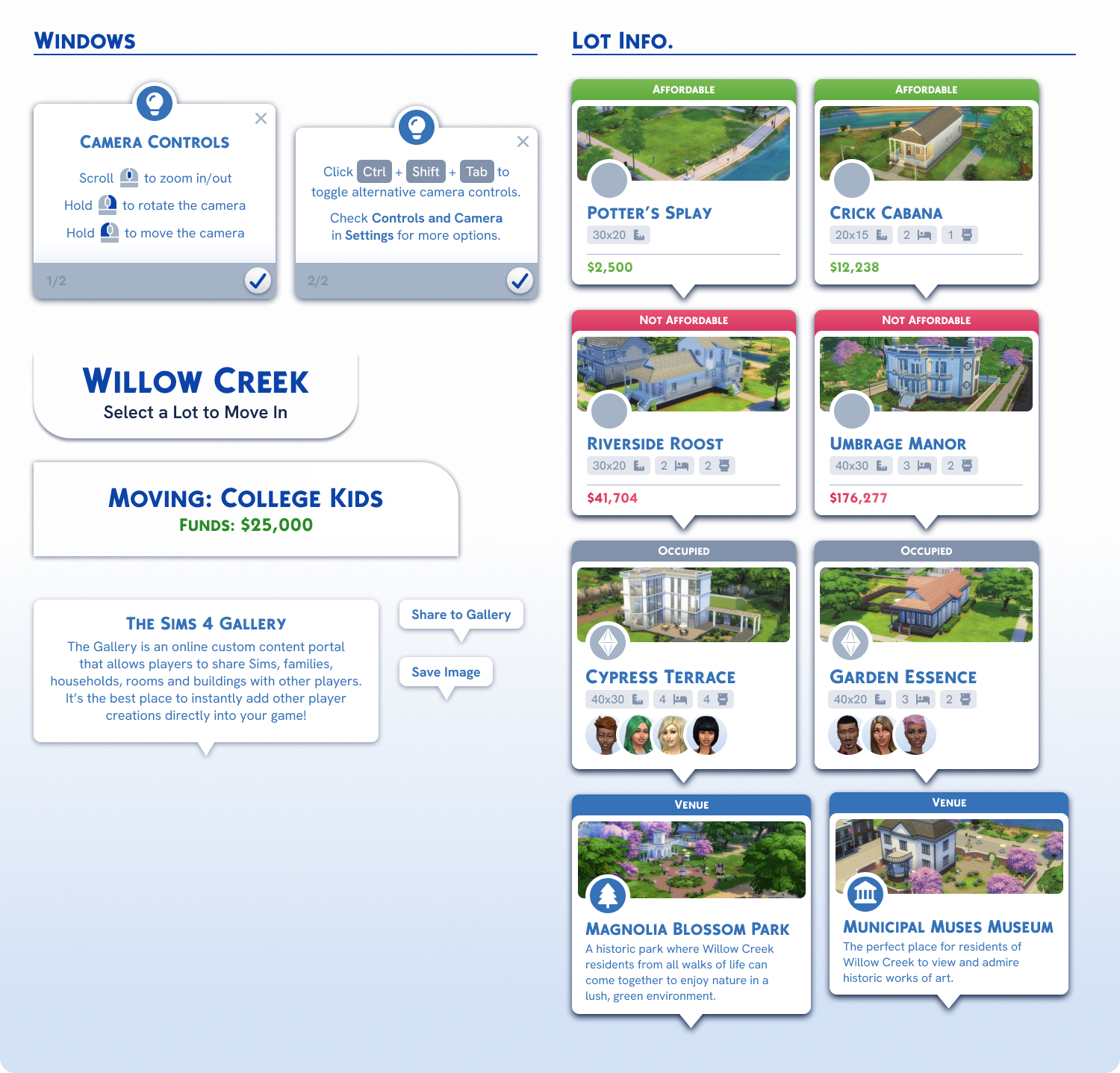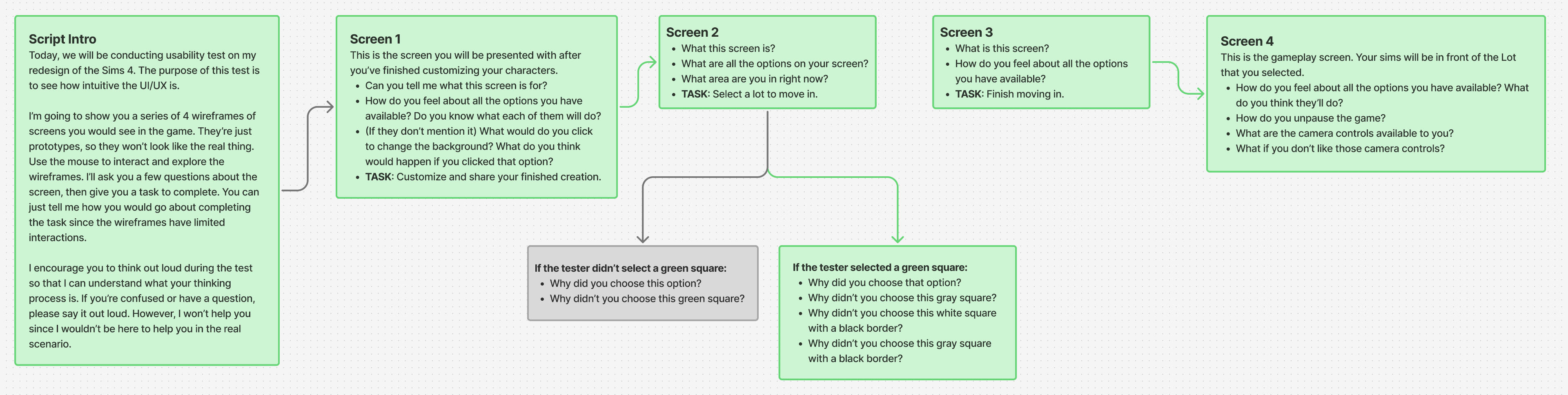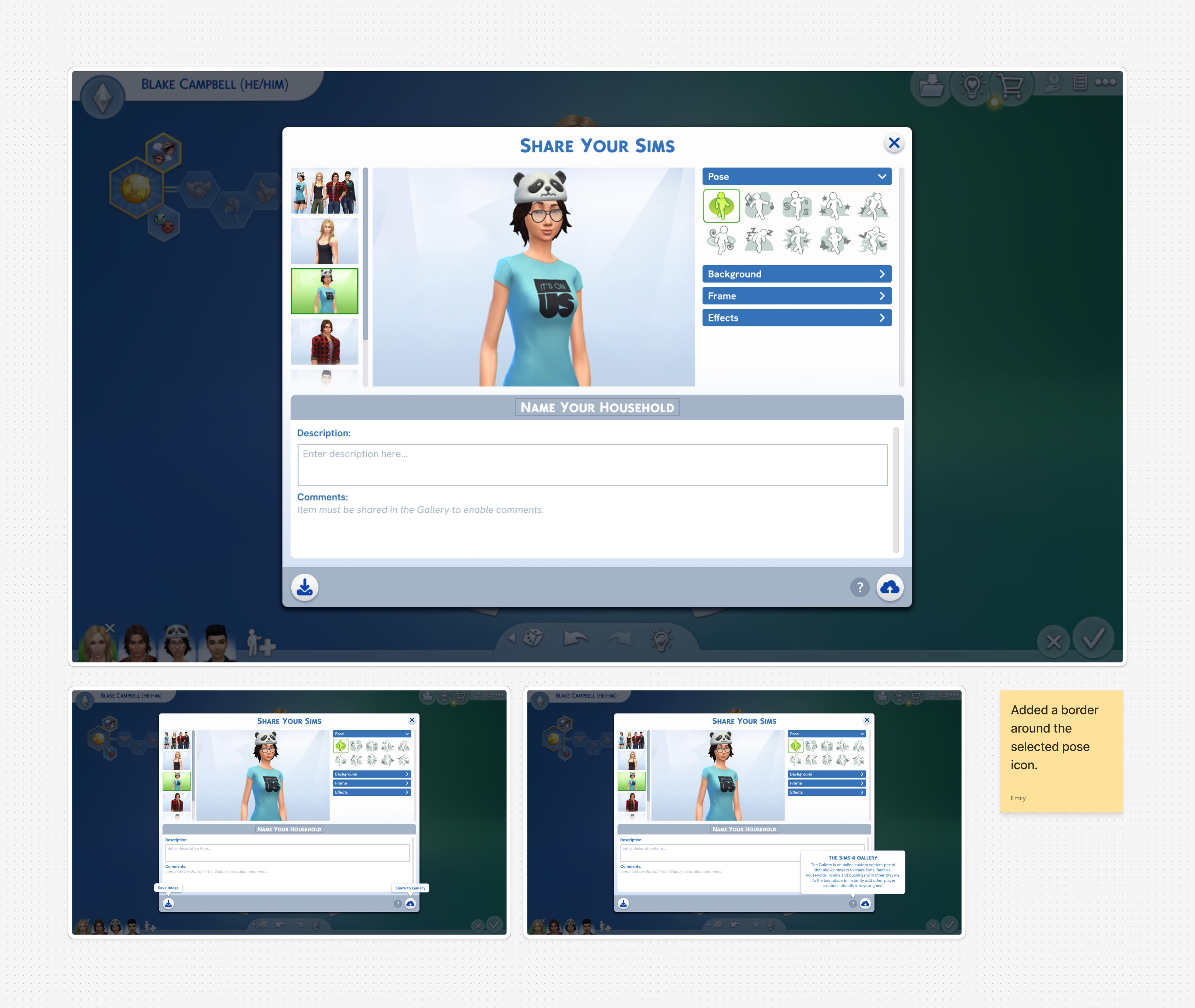While collecting screenshots, I discovered I analyzed an old version of The Sims 4. Many of the issues I aimed to fix were already fixed in the latest version of the game. I made the difficult decision to deviate from my wireframes to match the latest version of the game. This was a time-consuming setback but a necessary one.