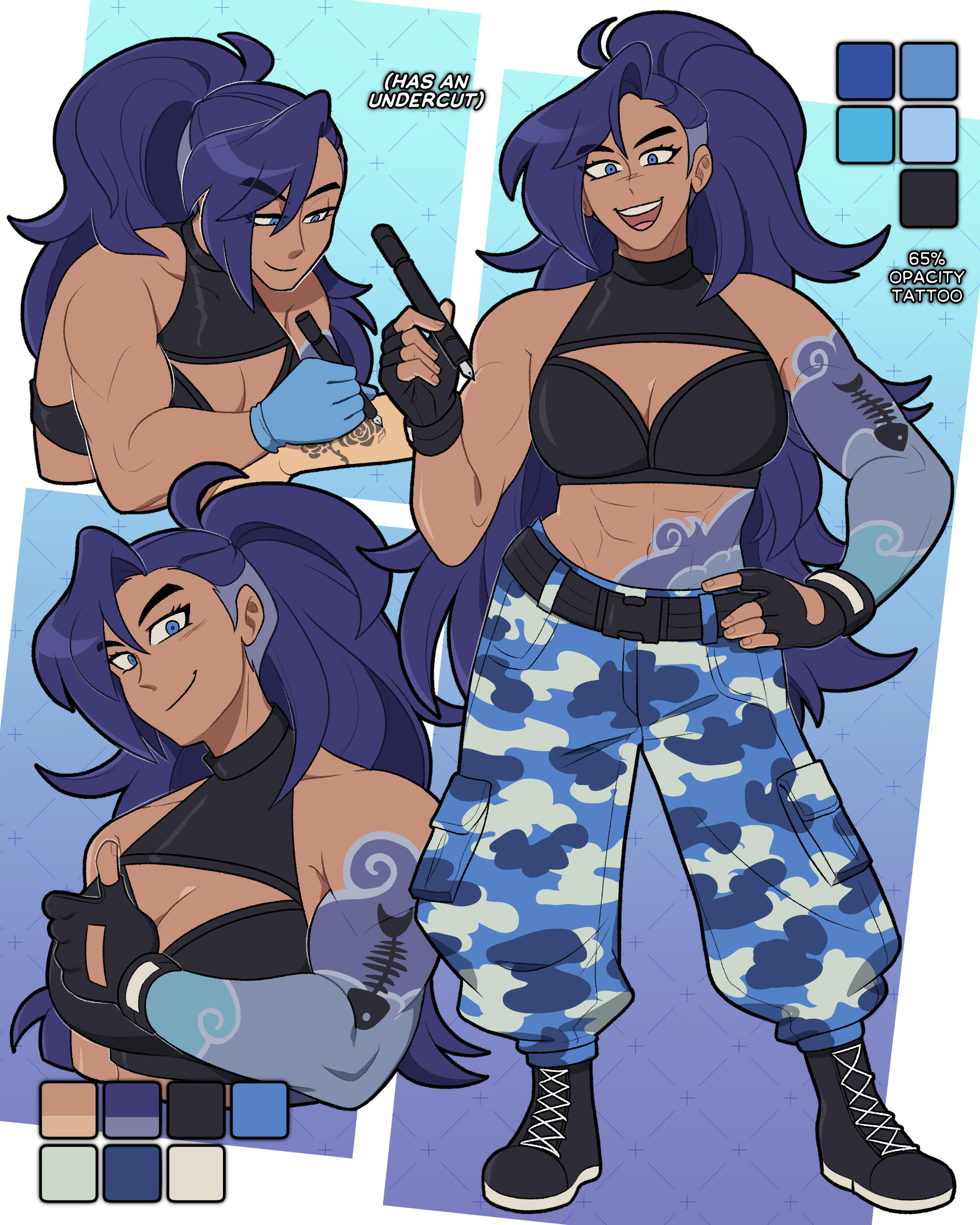 The tattoos are only on the left side of her body because I want to imagine she did a bunch of practice designs on herself.